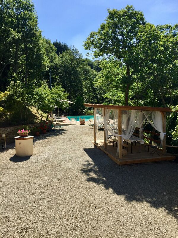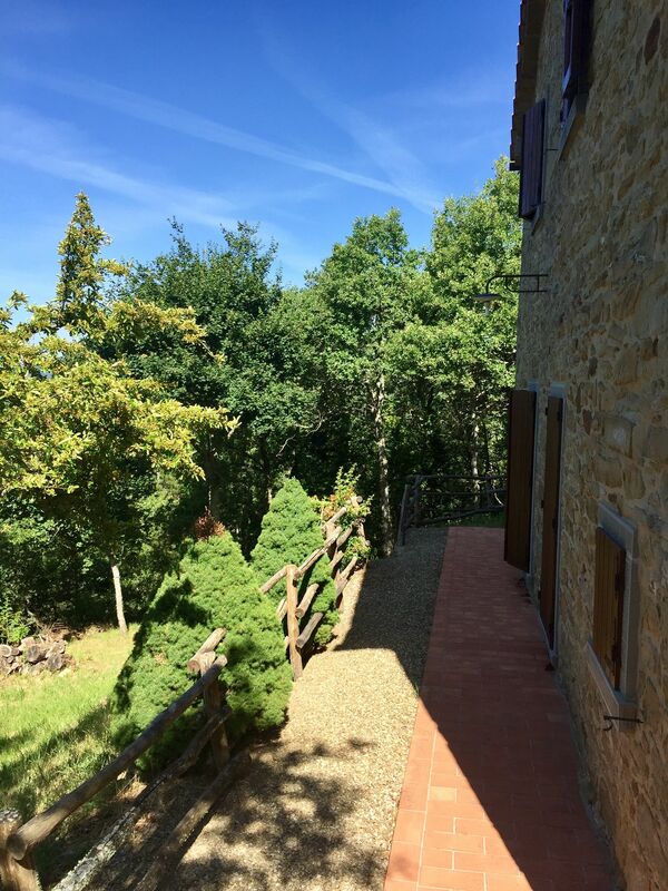 Excelente 5 /5Wir, eine 4-köpfige Familie mit Hund haben 2 wunderschöne Wochen in diesem traumhaften Ferienhaus verbracht. Die Lage ist einfach traumhaft. Für Naturliebhaber und Ruhesuchende genau das richtige. Wer Trubel mag und schnell mal was einkaufen will ist hier falsch. Nach Arezzo ins Einkaufszentrum sind es ca.15 km, und die letzten 5 km zum Haus sind schon etwas abenteuerlich, aber die Unterkunft entschädigt für alles. Vom tollen großen Pool mit ausreichend Liegen und Sonnenschirmen, einer neuen überdachten Terrasse zum draußen sitzen sowie auch im Haus ist alles notwendige da. Die Besitzer sind übrigens super nett und haben uns bei der Ankunft mit Lasagne und einem Obstkorb verwöhnt. Bei unserer Abfahrt streikte meine Batterie vom Auto und Luca, der Besitzer hat alles dafür getan um irgendwo ein Starthilfekabel zu organisieren. Dafür noch einmal "Grazie"