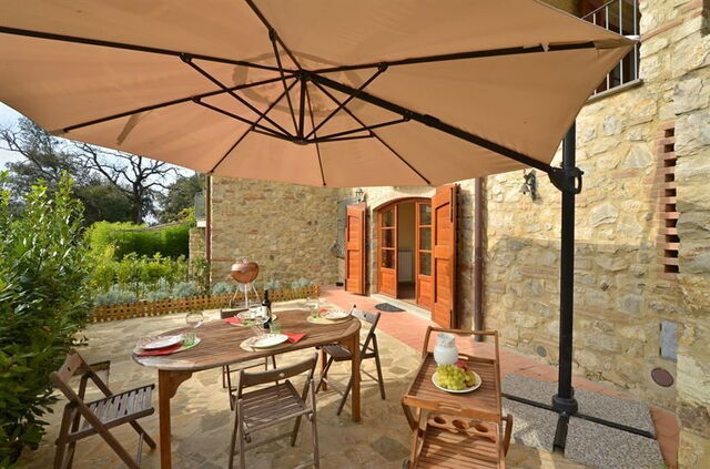 Das Haus fügt sich in eine geschickt angeordnete und konzipierte Anlage, die auch über einen Gemeinschaftspool verfügt. Die Straße, die an der Anlage vorbeiführt ist wenig befahren und stört nicht wirklich. Das Objekt eignet sich für alle Urlauber, die ruhig, inmitten eines der berühmtesten Weingebiete, ihre Ferien verbringen möchten.