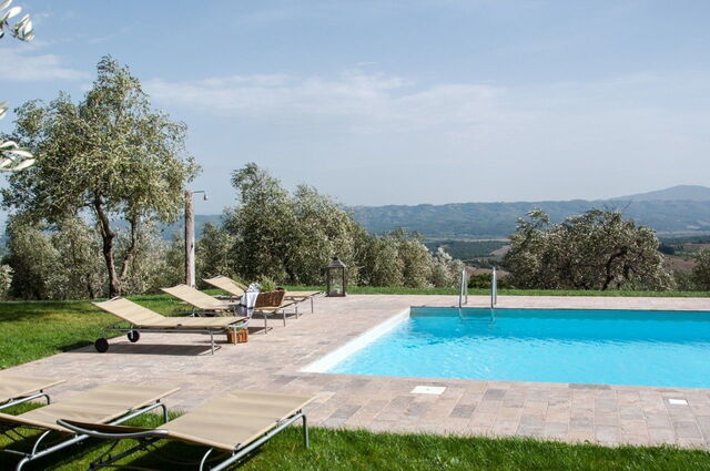 We had a fantastic week in May in the CASA OLIVIA. We were greeted warmly by a great hostess who always gave us good tipps and advice. The spacious apartment is on the first floor of a huge stone house and is absolutely tasteful and high quality furnished. Large comfortable beds, modern bathrooms, a huge perfectly equipped kitchen and a huge living and dining room with fireplace. But you can also sit comfortably in the kitchen and eat. We have several times made a fire in the well functioning fireplace and always found ample dry wood on the large property. Otherwise, however, there would have been wood supplies right in front of the house. The house is in a top condition, was super clean and was cleaned twice during our stay. The pool is also large and fantastically located and is of course still an additional highlight of the house. Although the landlord family lived on the property we were in the house as well as at the pool all the time over completely undisturbed. The nearest small supermarket is in Piazze only 3km away and a larger one in Fabro at 11km distance. Conclusion: dream house, with great pool and excellent facilities in great surroundings.