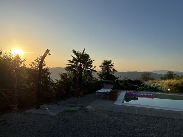 We loved this well-appointed villa with 3 well-appointed bedrooms, a nicely outfitted kitchen, lovely views and pool with outdoor shower. It is secluded and off the beaten track on the edge of a quaint little town with a great restaurant and a cafe. Florence and Sienna are within an hours drive.