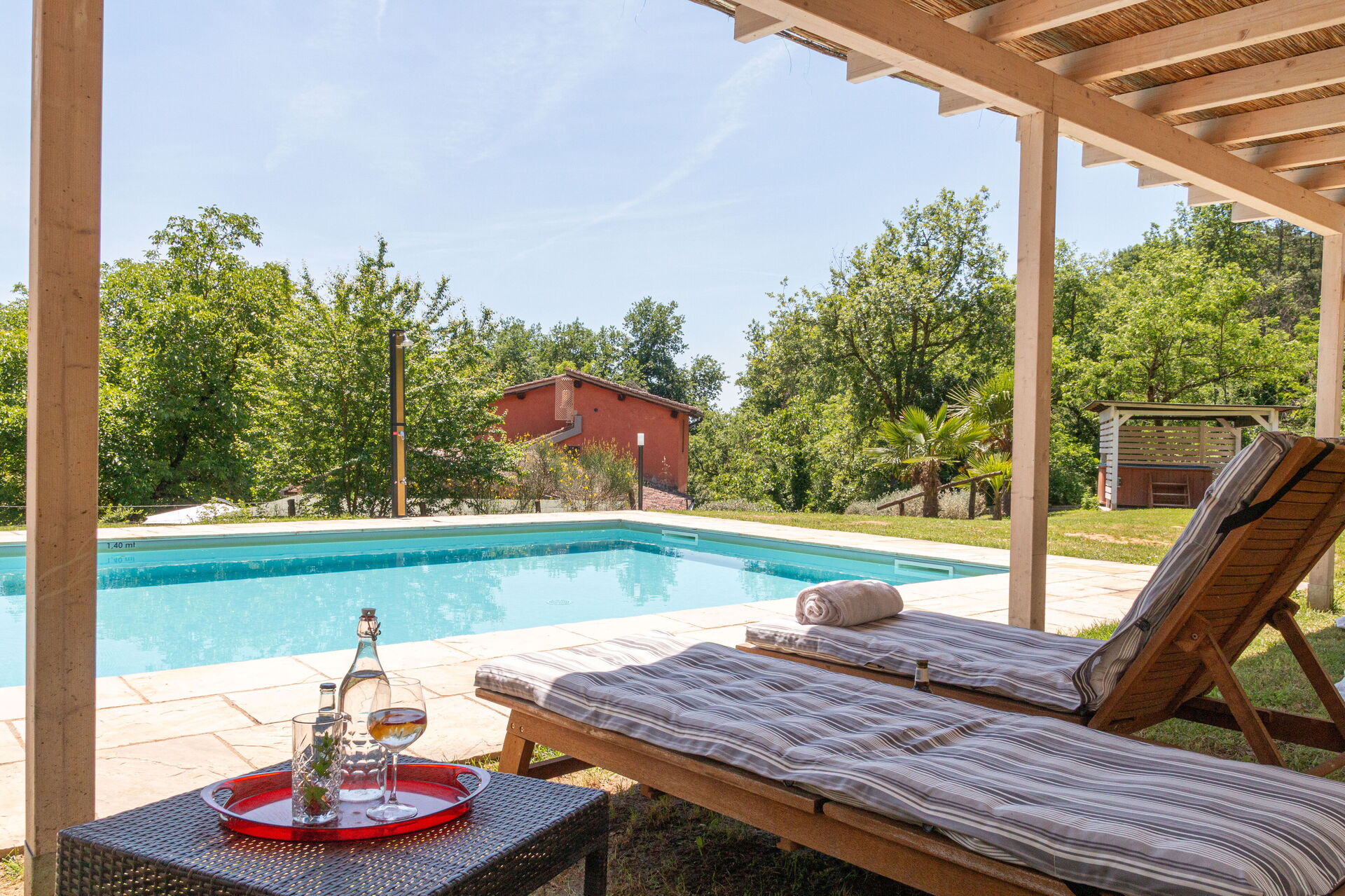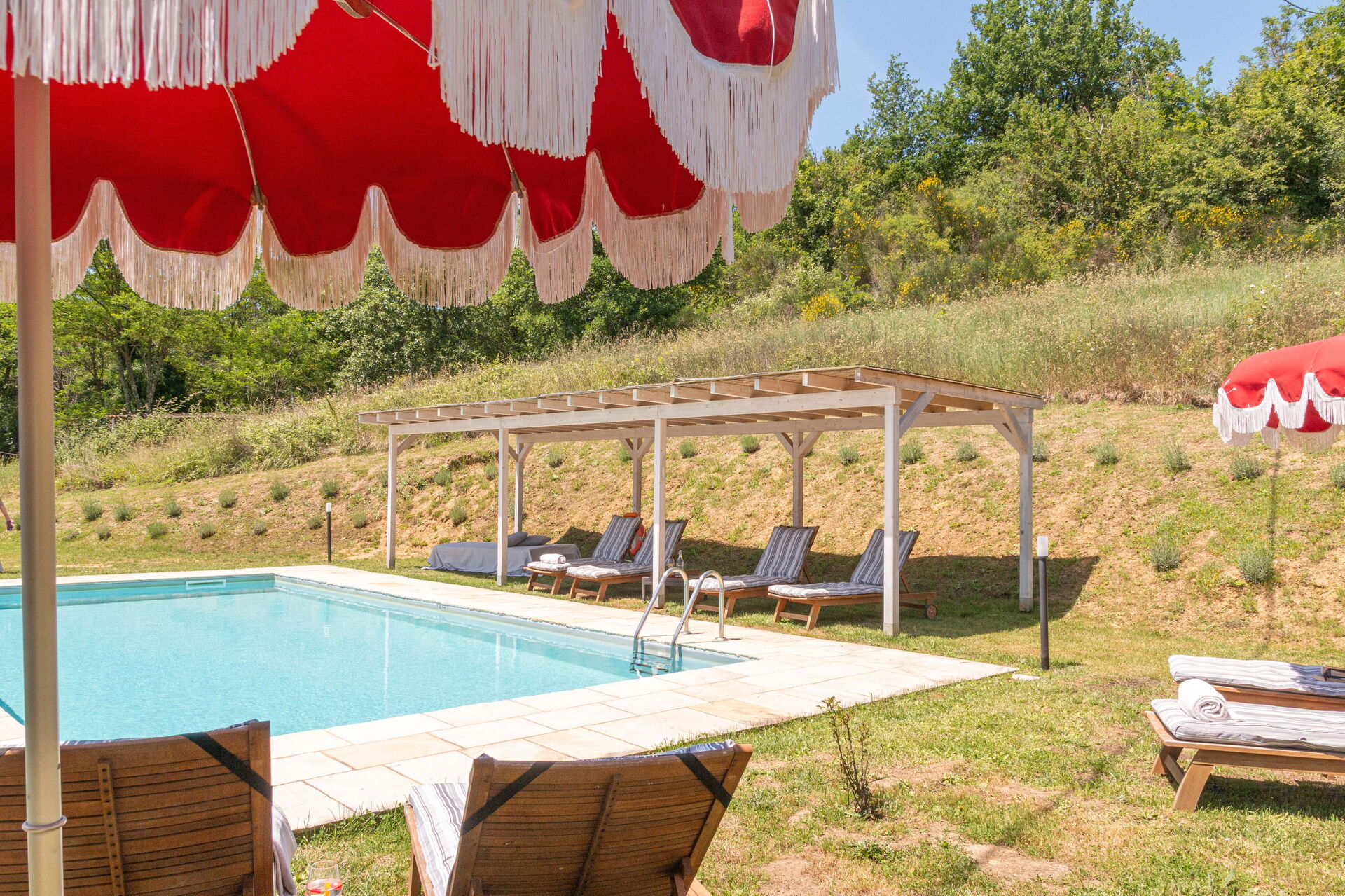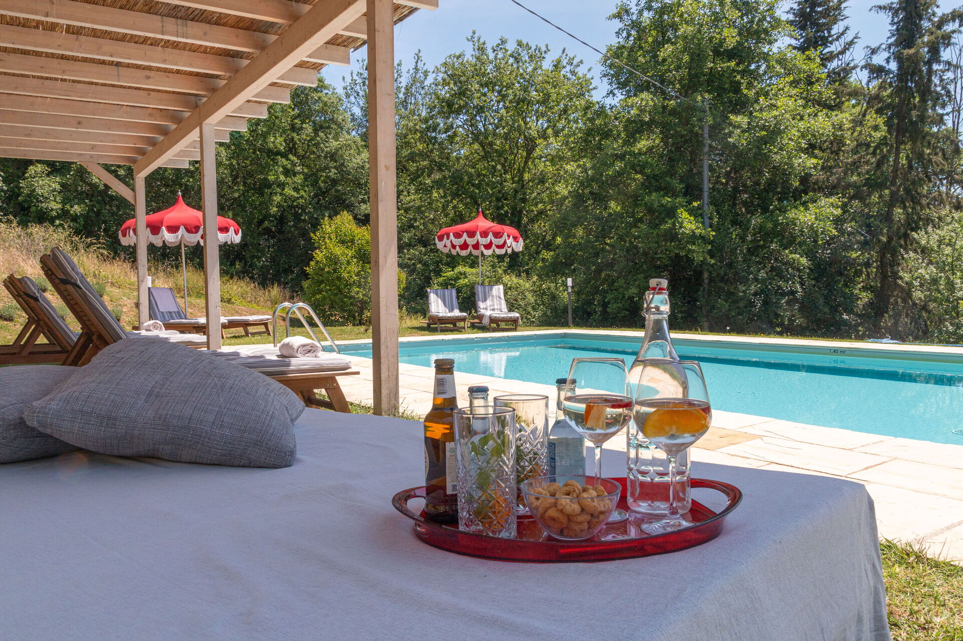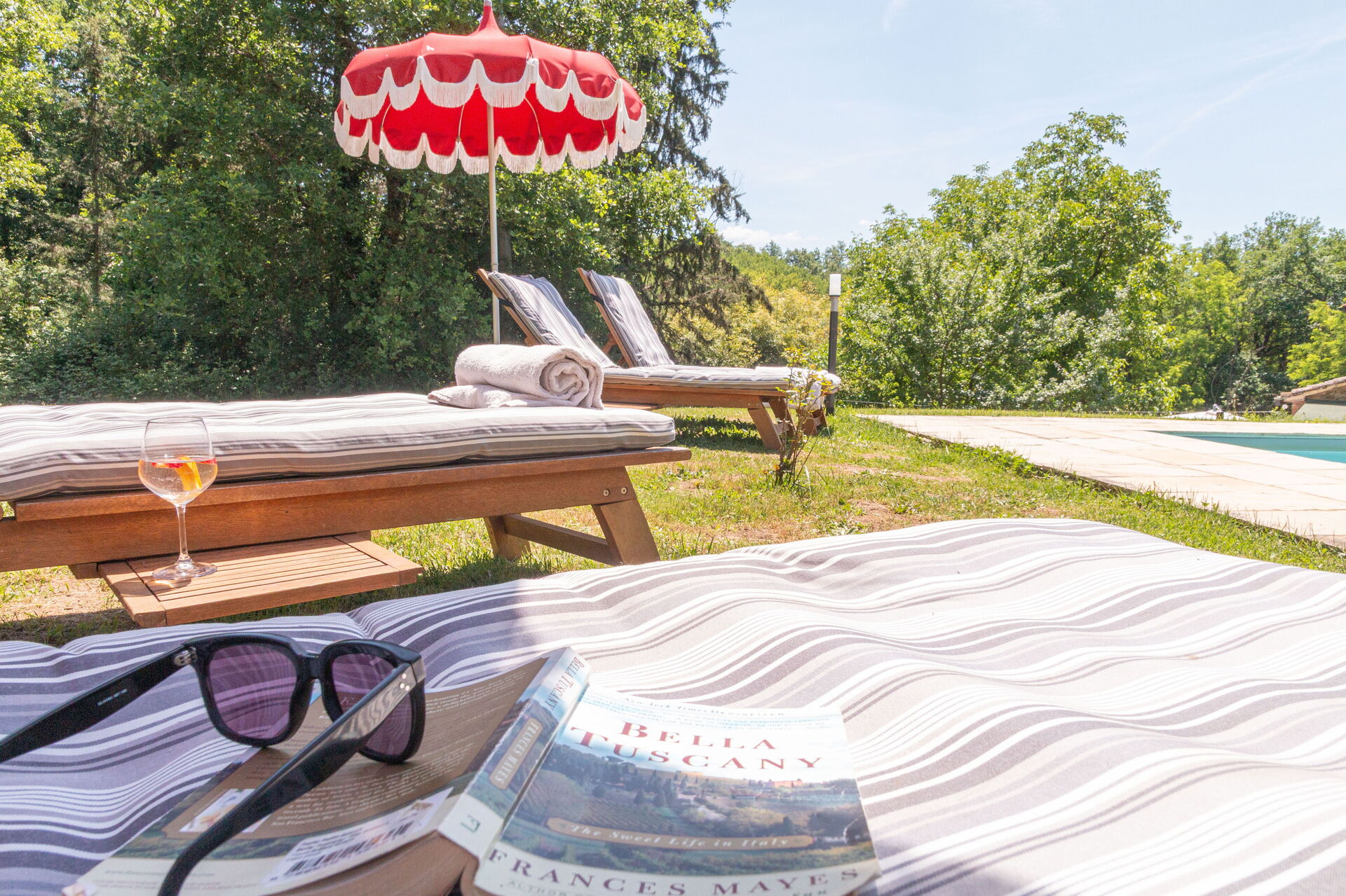 Piscina, a pocos pasos de distancia (12 x 5 mt 1,4 mt de profundidad - 1,6 mt). Hamacas, sillas, sombrillas.
