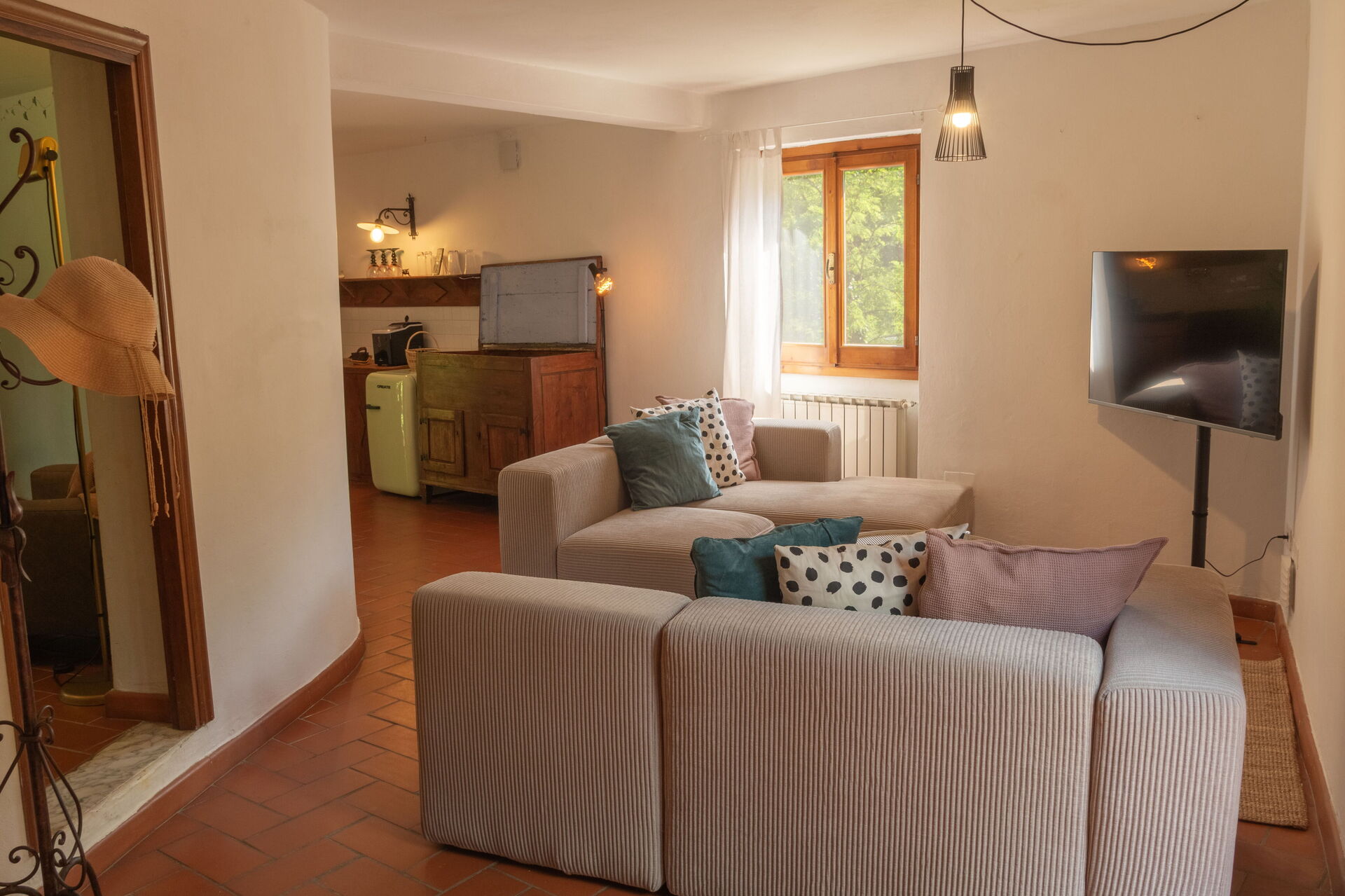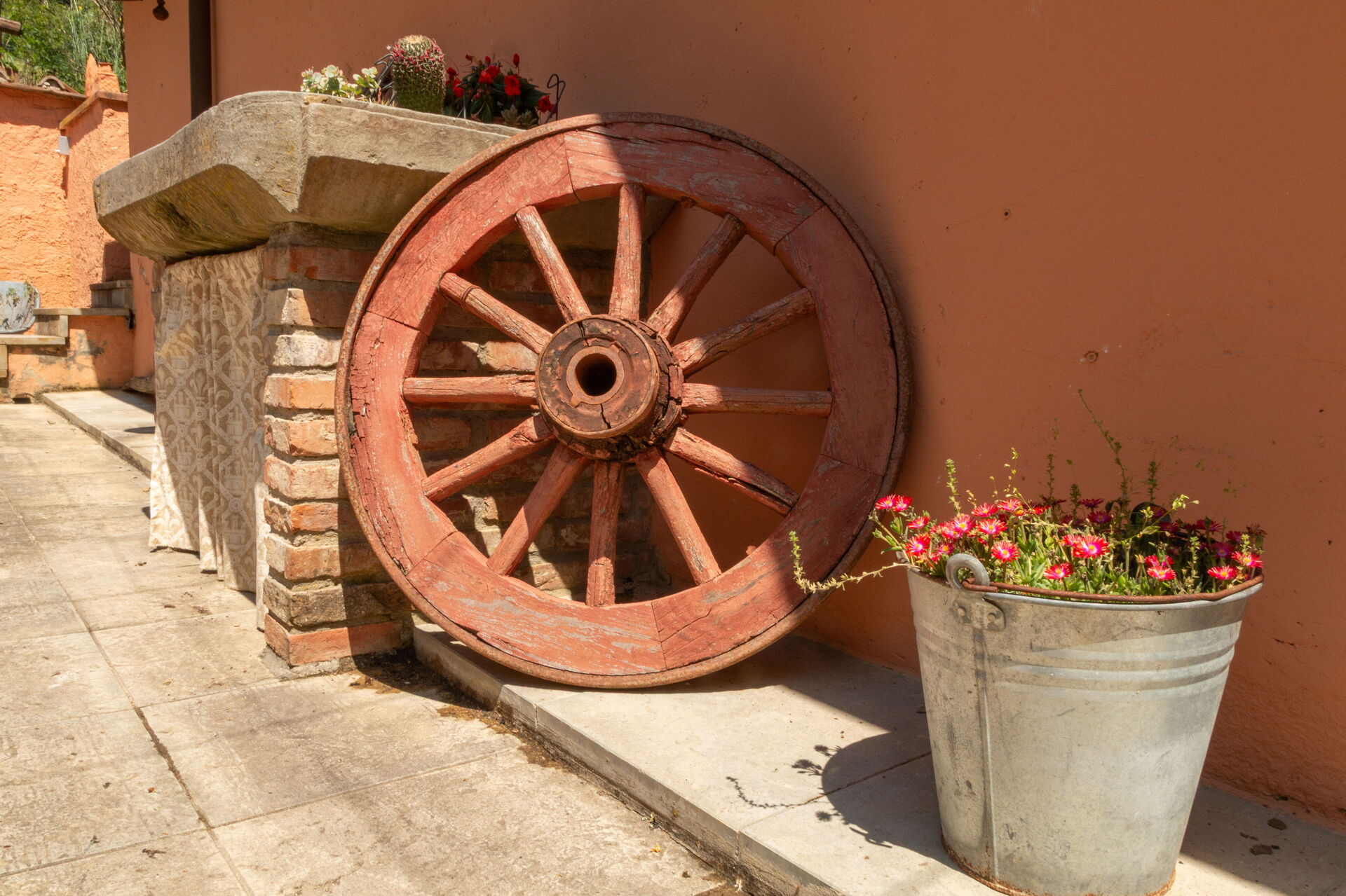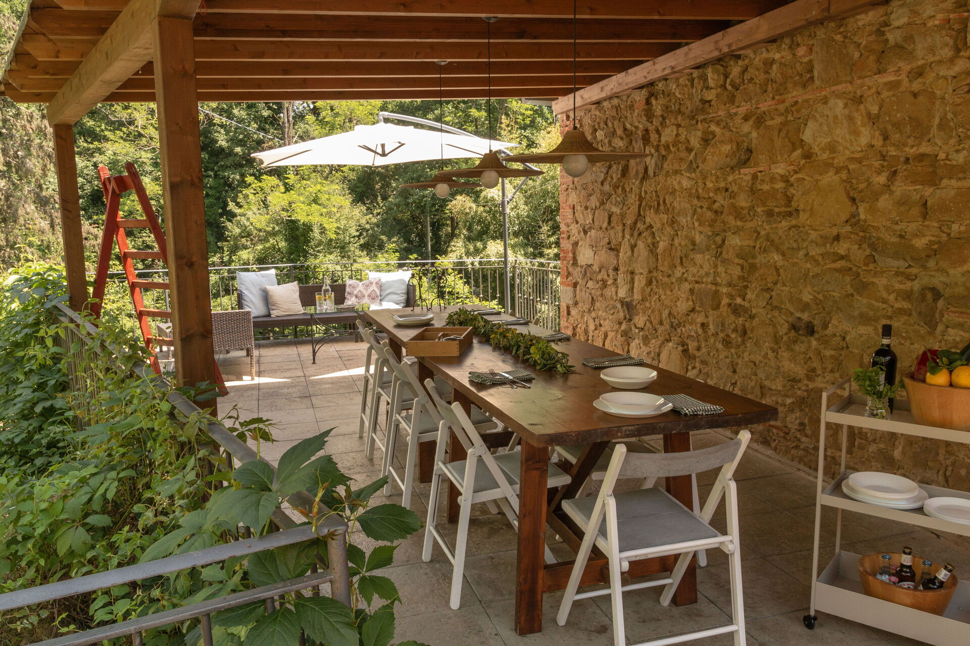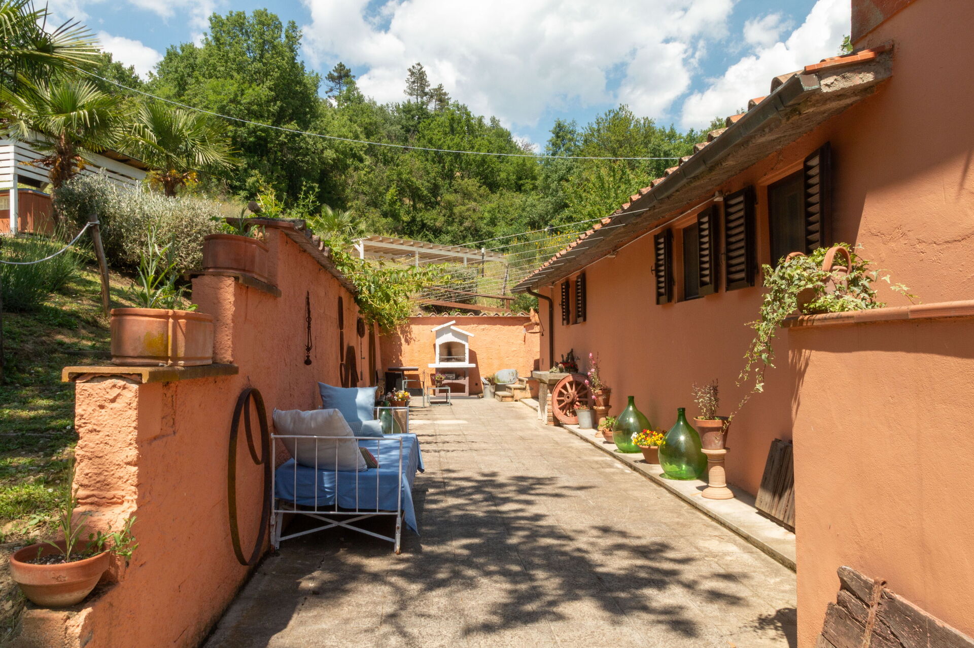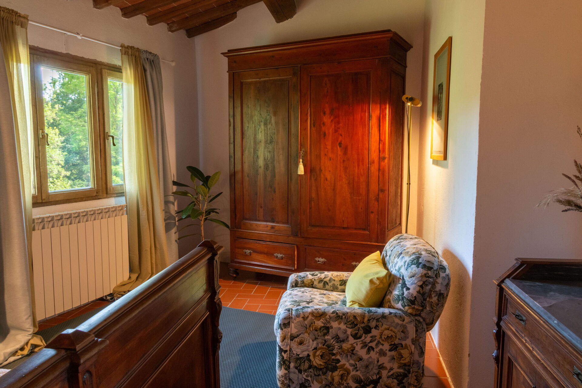 Toda la propiedad está formada por el Podere y se extiende por unas 8 hectáreas de campos y bosques de robles. El camino de acceso a la propiedad continúa más allá del pequeño puente hasta el final de su recorrido hasta las casas del antiguo Mulino del Doccio.