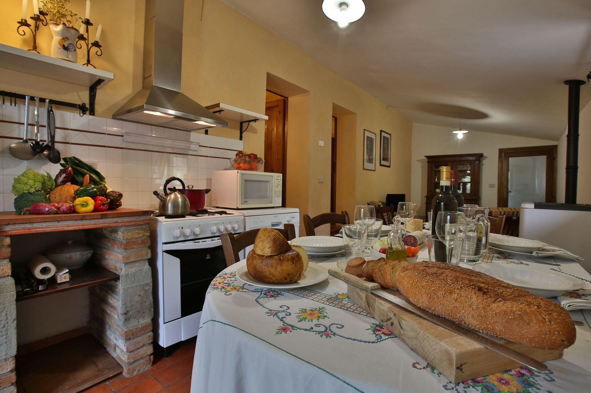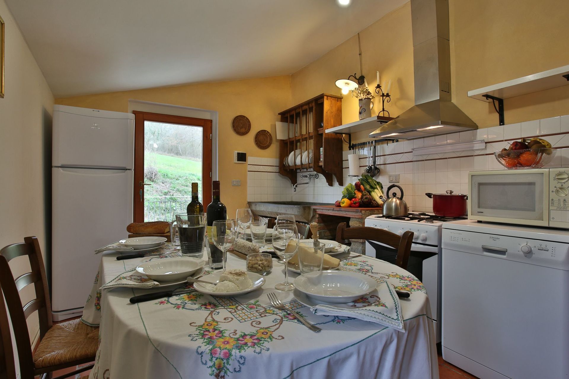 La cocina tiene un lavabo de piedra muy antigua y está equipadas con nevera/congelador, horno, microondas, lavavajillas y cafetera. La mesa es de madera y es suficientemente grande para acomodar hasta 5 personas.