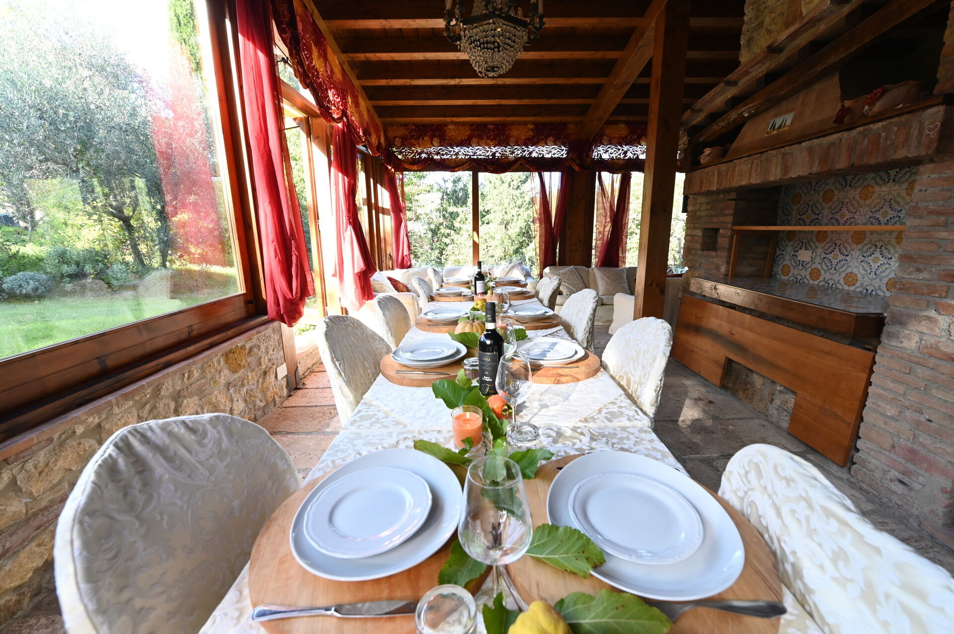 Tras llegar será acogido por el propietario u ama de llaves y encontrará una hermosa propiedad limpia y acogedora with views of las colinas ideal para unas vacaciones relajantes en Toscana. Para su disfrute encontrará una piscina privada donde puede descansar disfutando de un buen refresco después de un día pasado visitando museos. Afuera encontrará porche y barbacoa. Cenar con familia y amigos es un aspecto de gran importancia en la cultura toscana. Aproveche de una cocina bien equipada para preparar comidas utilizando productos locales durante sus vacaciones. La cocina incluye cafetera, microondas, toaster, estufas y nevera, además de, muchas vajillas y cubiertos para hasta 14 personas.