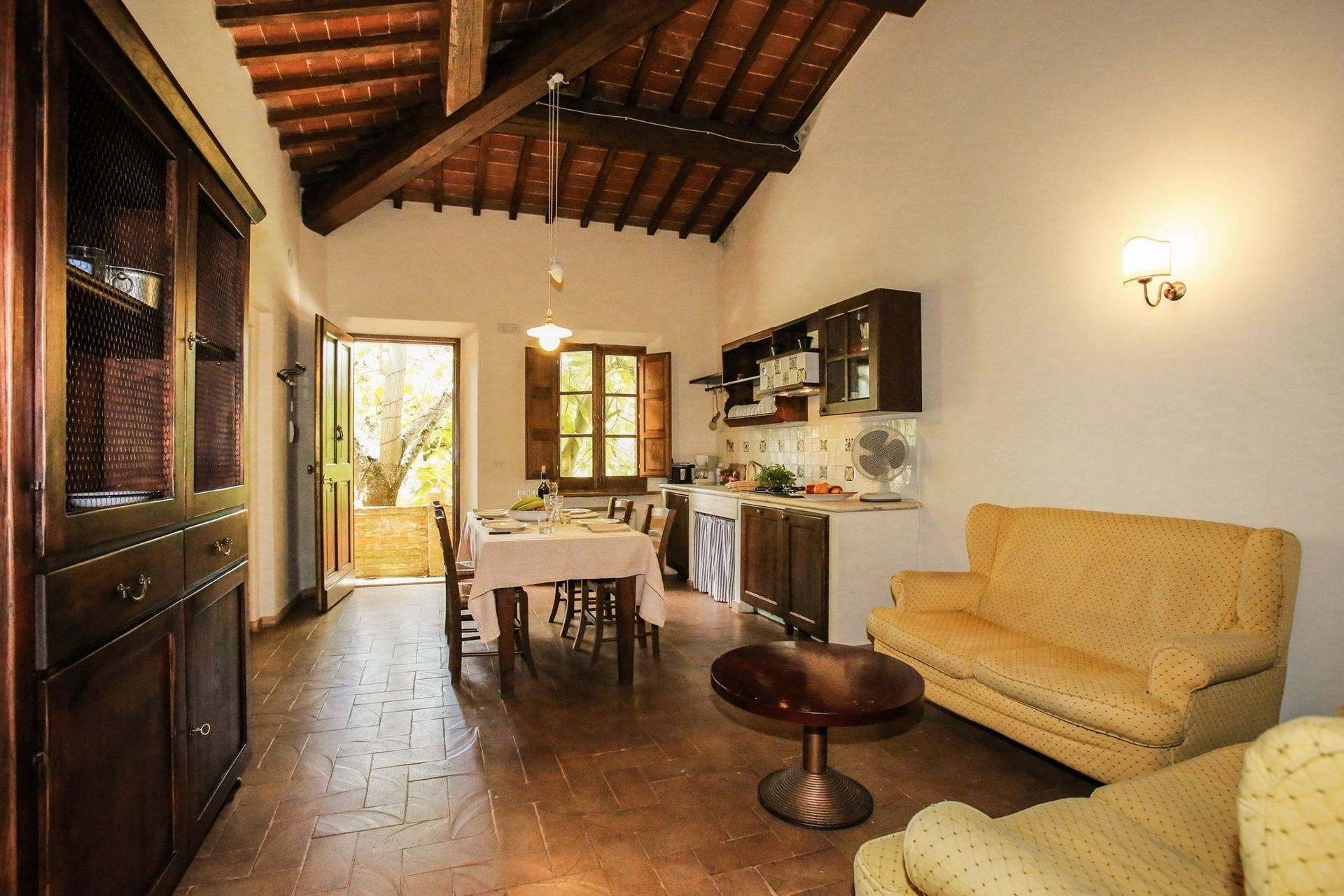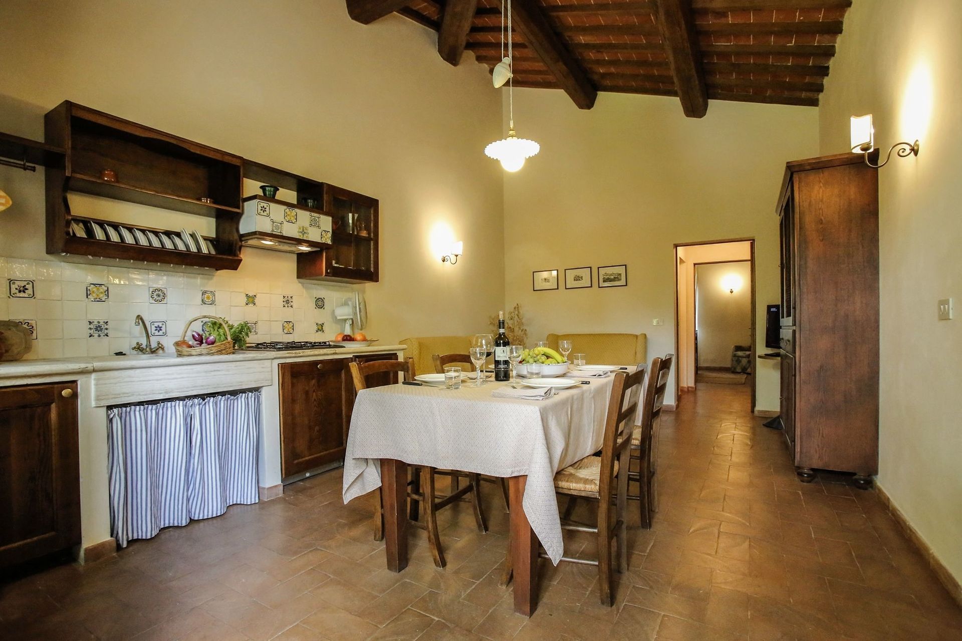 Cenar con familia y amigos es un aspecto de gran importancia en la cultura toscana. Aproveche de una cocina para preparar comidas utilizando productos locales durante sus vacaciones. La cocina incluye muchas vajillas y cubiertos para hasta cuatro personas.