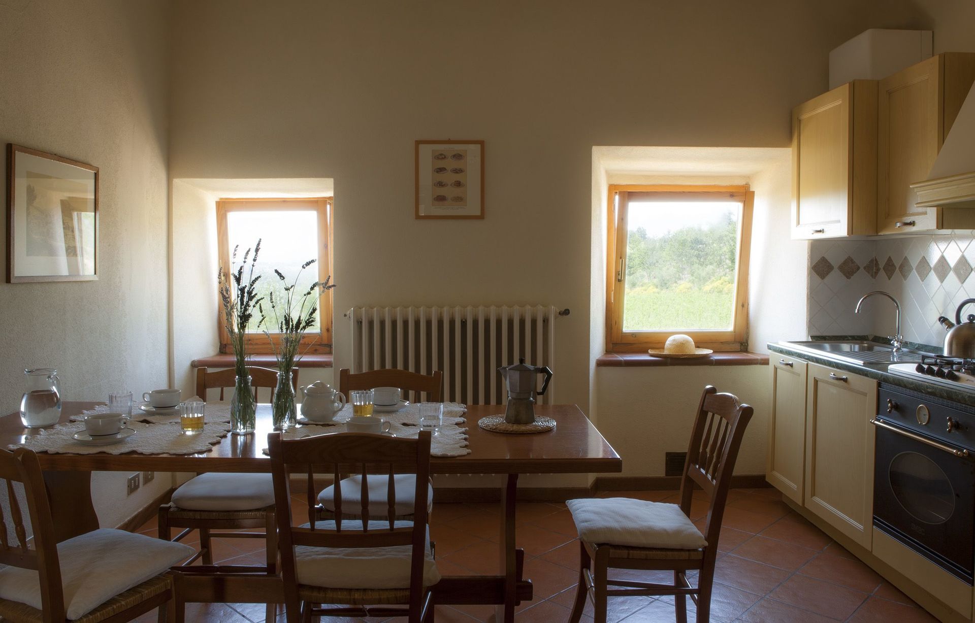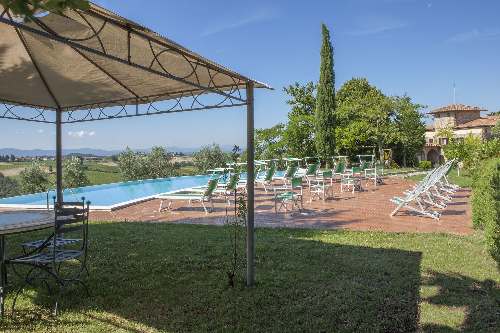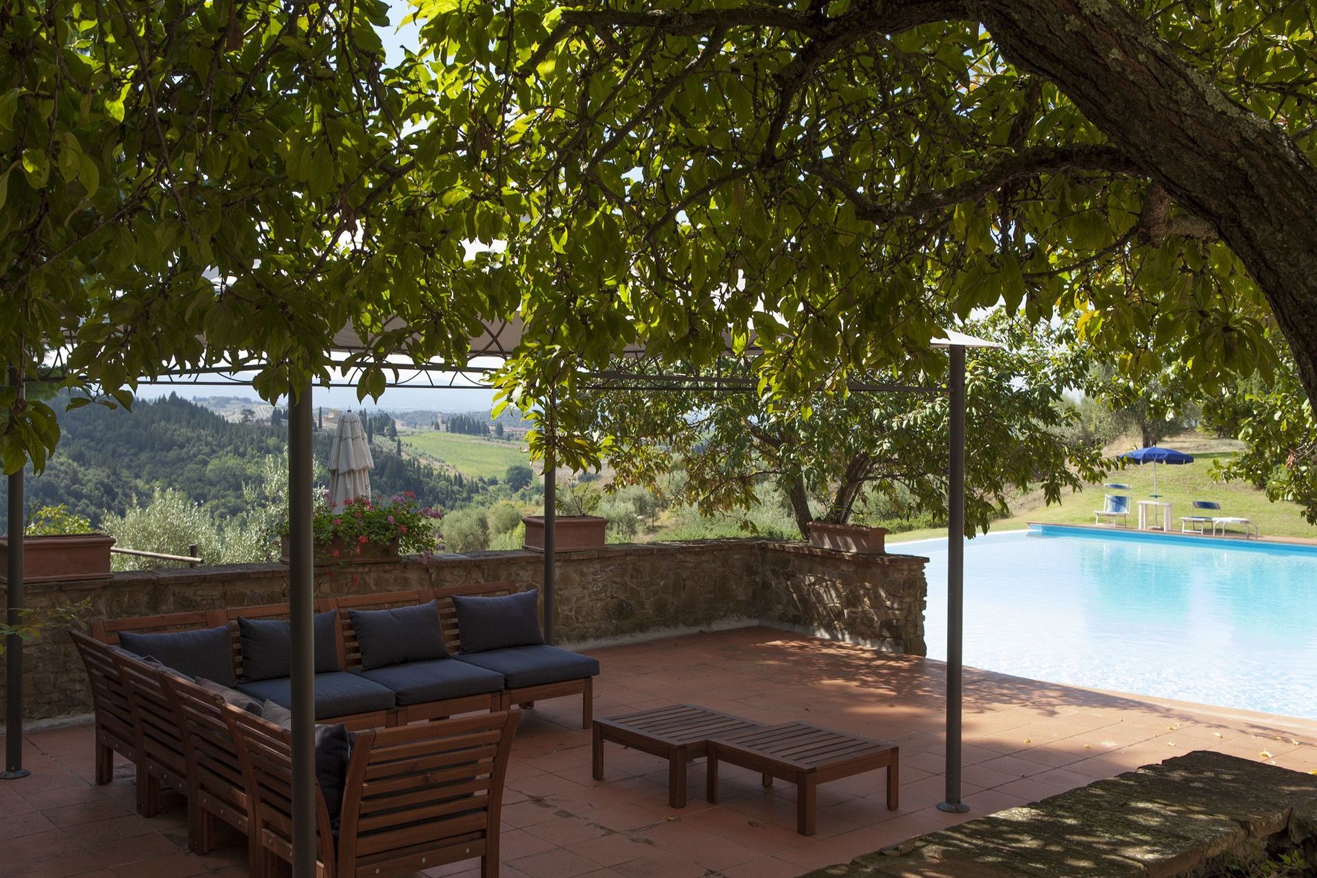 Idyllic location within the beautiful area surrounding Barberino Val D'elsa. This is foremostly a working farm (winery and olive growing - all organic), and visitors should set their expectations in line with this. Quercia Al Poggio isn't a 5 star spa resort, where services are provided for your every need, but it is a more than adequate facility where you can relax and be away from it all. Downsides - quite a long rocky driveway, no air con in the rental areas, and no wifi in Proneta. Upsides - there are plenty. Tucked away, peace and quiet. Very helpful ladies in the office, who will bend over backwards to advise and assist where they can. If you really want to get away from it all, and aren't so bothered about 5 star comforts and the material world, then this is a great place to stay.
