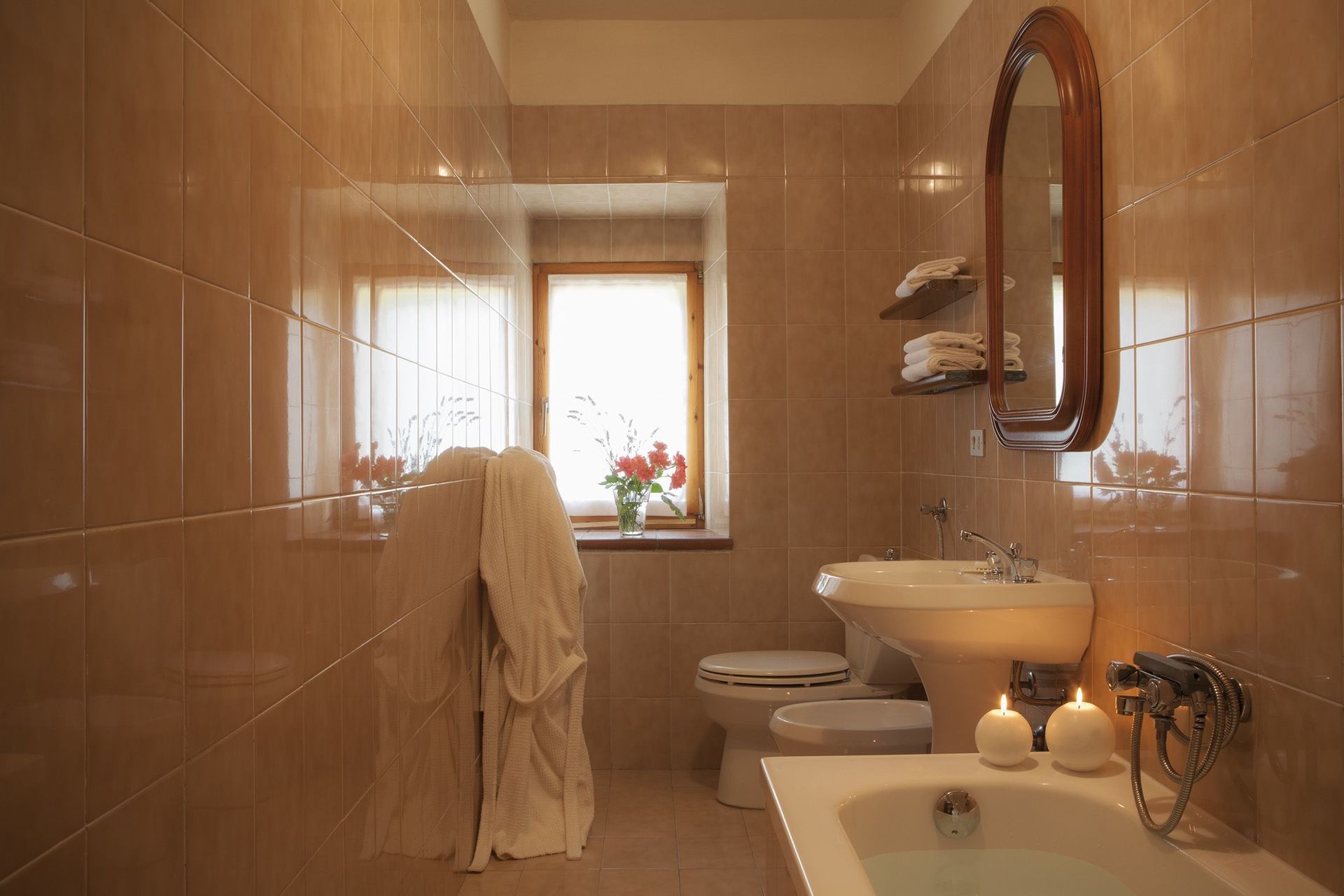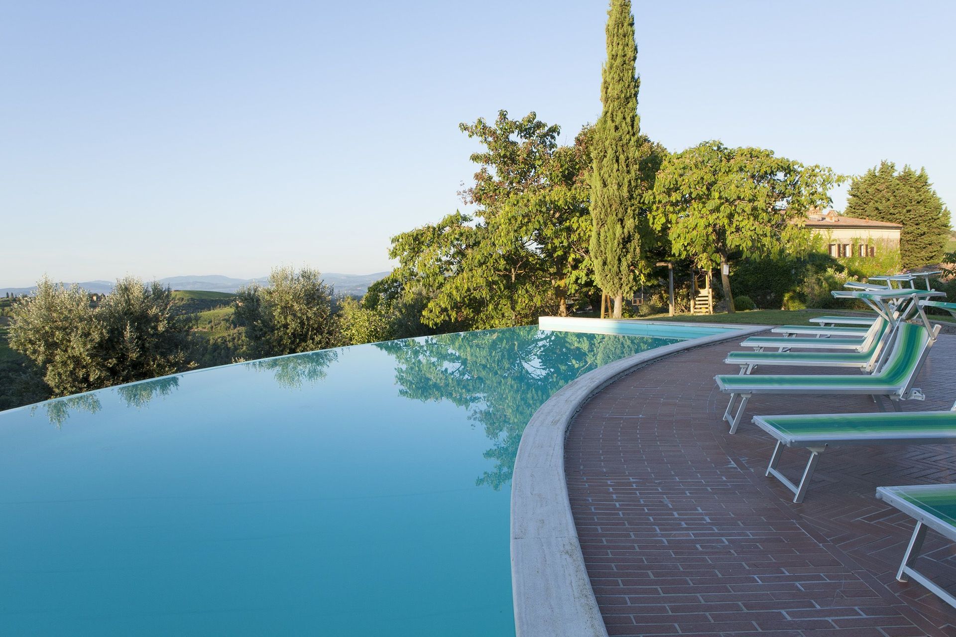 Beautiful location with a fantastic view over the Tuscany hills, both towards the North and South. The view in the morning from our Apartment was superb as well as the Sunsets towards the direction of the coast.