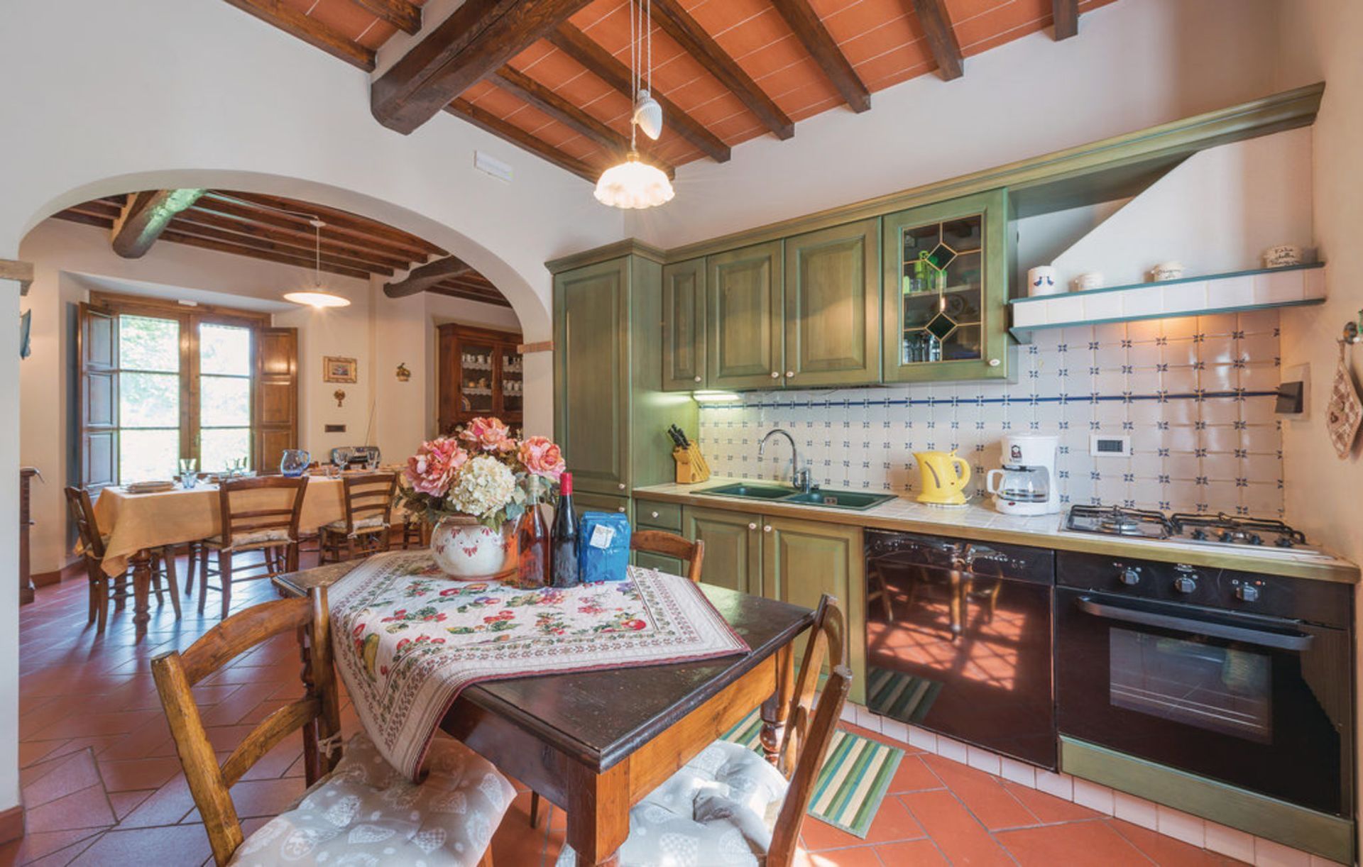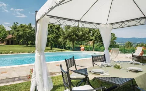Ex tastefully renovated barn situated in panoramic position on the lower slopes of Mugellane hills between the town of Borgo San Lorenzo and Vicchio, a few kilometers from Florence. The property offers a very nice and comfortable furnishings, with antique pieces. Air conditioning on the first floor. Surrounding the house there is a large garden of over 5,000 square meters fully fenced and equipped with private, fenced and heated swimming pool for guests (12m. x 6m. prof. 125 / 200cm.). The property also has outdoor spaces (two gazebos) for outdoor dining (barbecue and pizza oven). Private tennis court with full use of guests (rackets available). Wi-Fi free. Private parking in the property. The house is located 3km. from "Vicchio" (birthplace of Giotto and Fra Angelico), 35km. from "Florence", at 23km. from the "Barberino Designer Outlet" (over 100 stores of major brands of Italian and international fashion) and Lake "Bilancino" (canoeing, sailing, windsurfing), at 12km. the "Poggio dei Medici Golf Club", 7km. riding stables.
