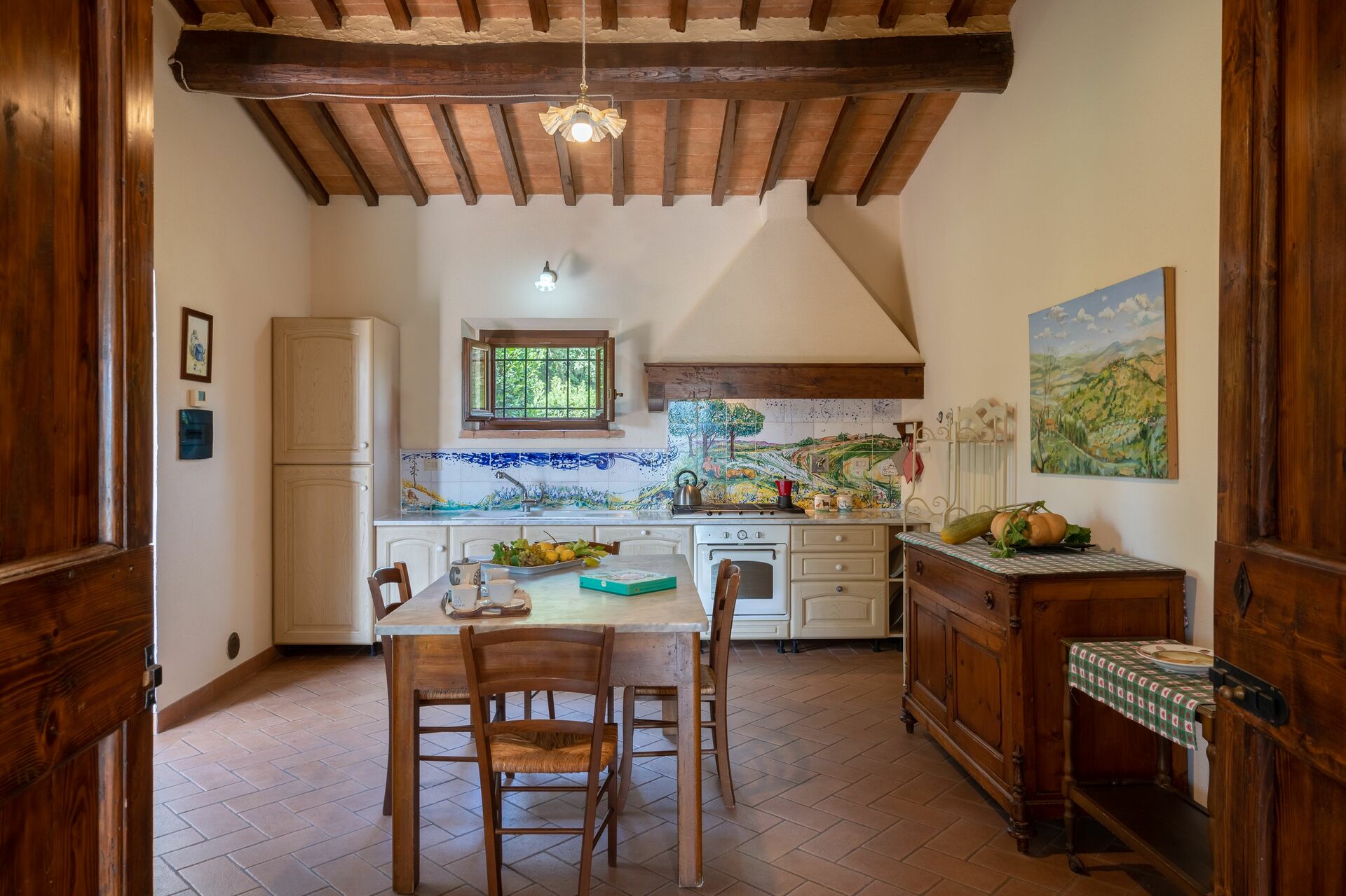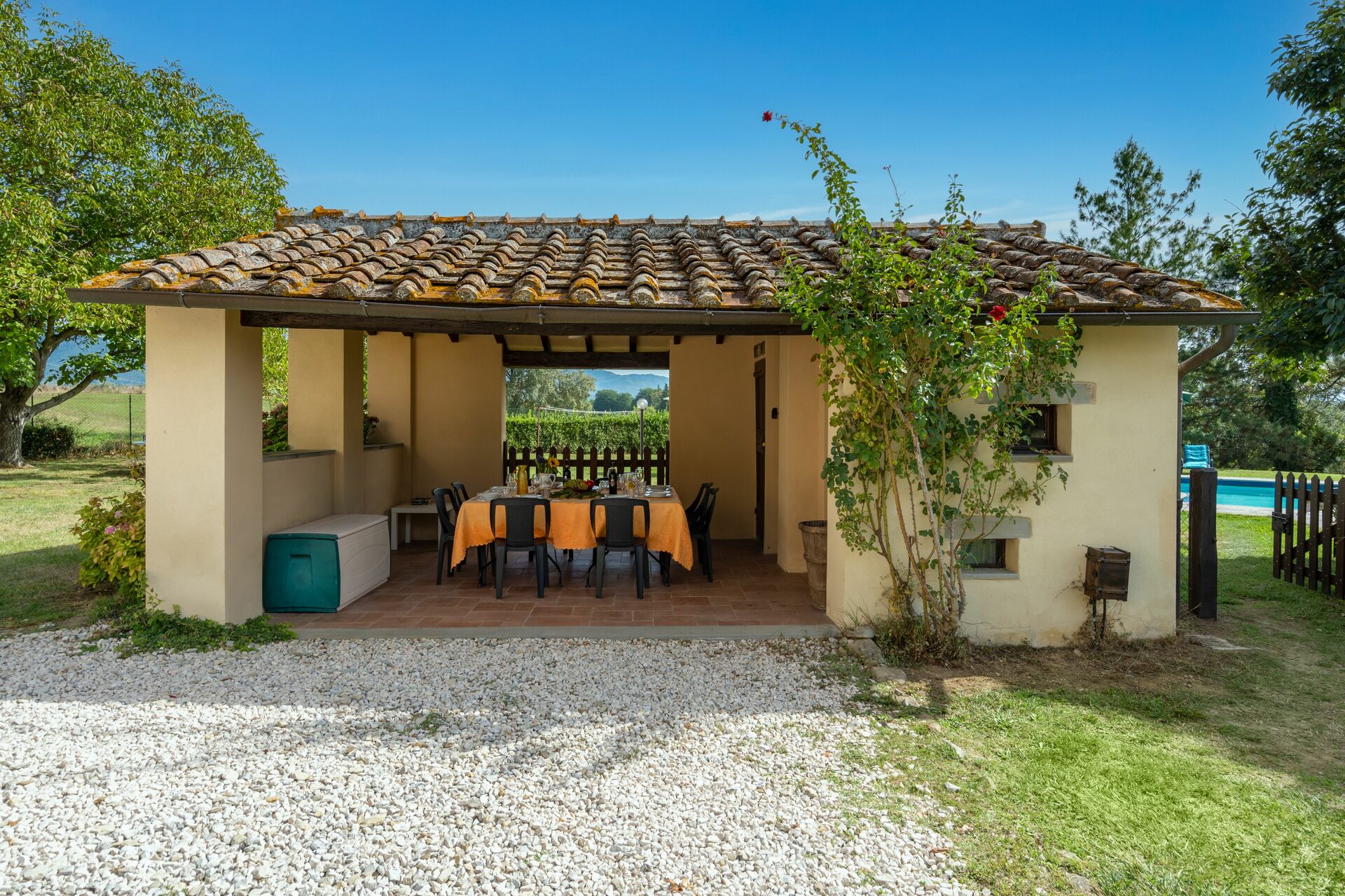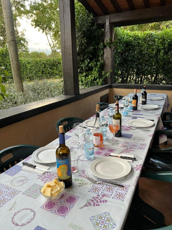 Tras llegar encontrará una estupenda propiedad limpia y acogedora con vista las colinas ideal para unas vacaciones relajantes en Toscana. Después un día pasado a visitar lugares turísticos, disfrute de una buena copa de vino con sus amigos y su familia al lado de la piscina - lo mejor para descansar después de un largo día. Para su placer, afuera hay parrilla, porche y parque infantil. Comer con familia y amigos es un aspecto de gran importancia en la cultura toscana. Aproveche de una cocina bien equipada para preparar comidas utilizando productos locales durante sus vacaciones. La cocina incluye cafetera, toaster, estufas y nevera, además de, muchas vajillas y cubiertos para hasta diez personas. Come 'al fresco' como un local, el patio es el lugar perfecta para disfrutar de la comida, la compañía y el hermoso clima toscano.