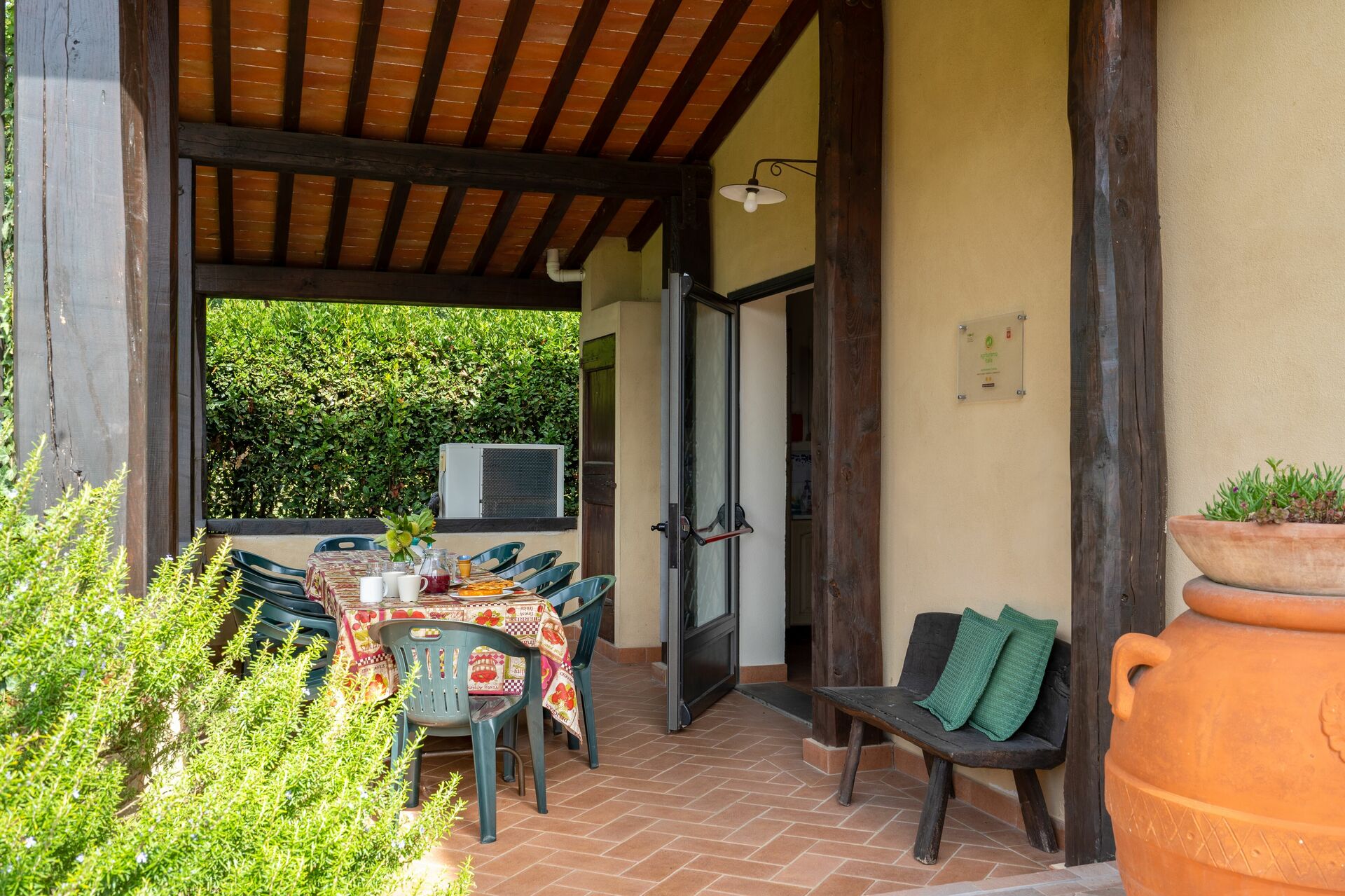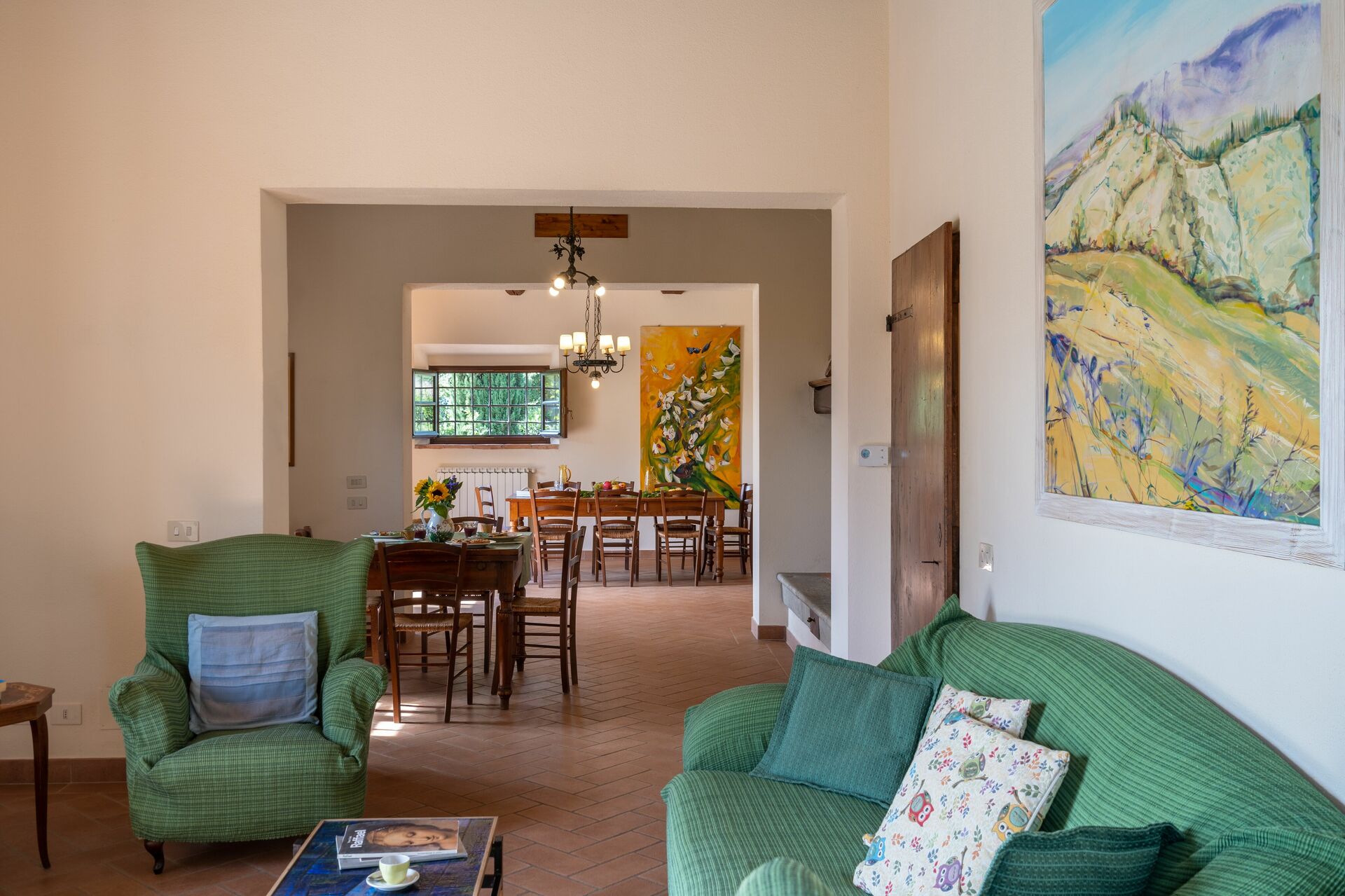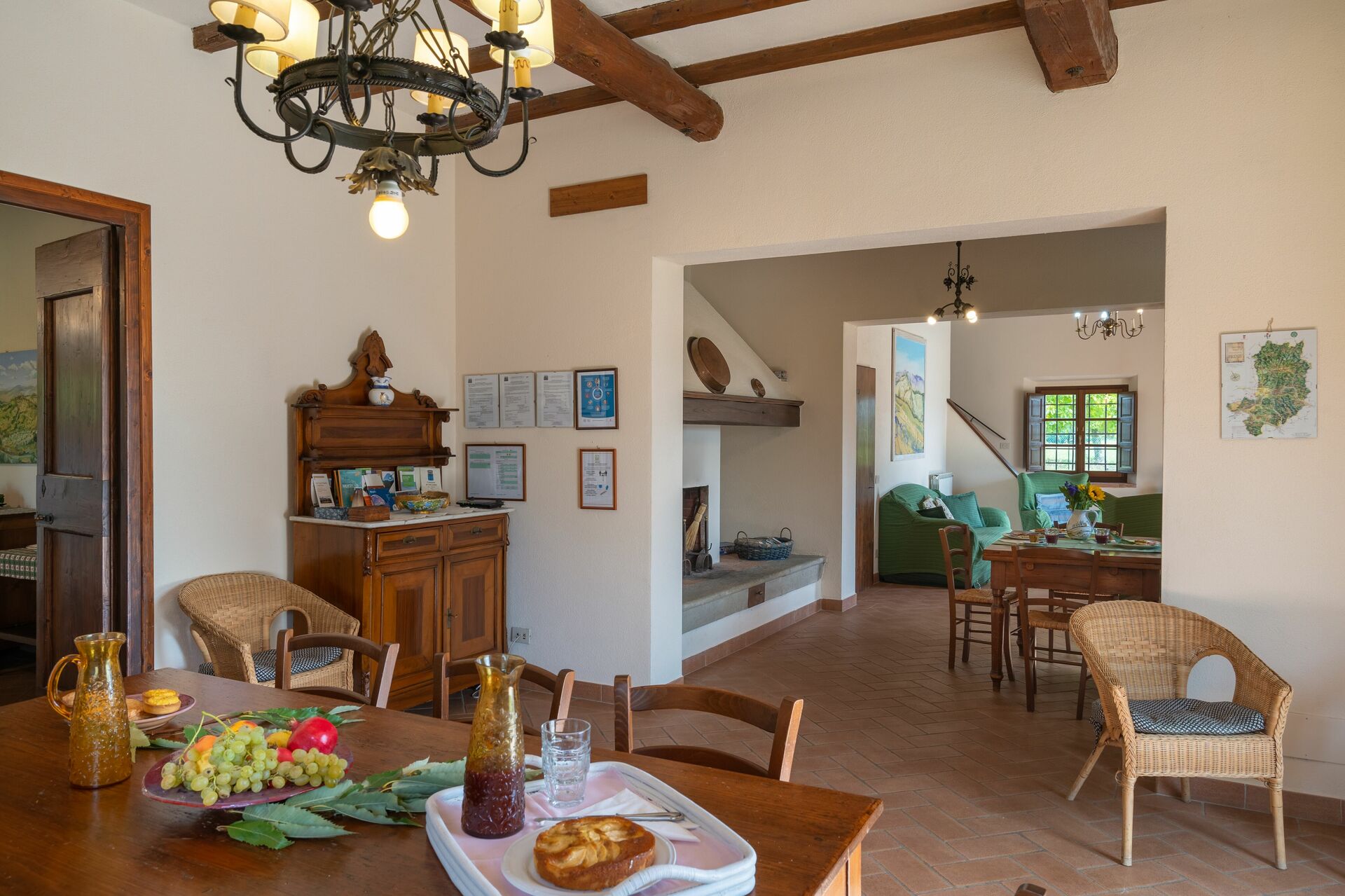 Tras llegar encontrará una estupenda propiedad limpia y acogedora con vista las colinas ideal para unas vacaciones relajantes en Toscana. Después un día pasado a visitar lugares turísticos, disfrute de una buena copa de vino con sus amigos y su familia al lado de la piscina - lo mejor para descansar después de un largo día. Para su placer, afuera hay parrilla, porche y parque infantil. Comer con familia y amigos es un aspecto de gran importancia en la cultura toscana. Aproveche de una cocina bien equipada para preparar comidas utilizando productos locales durante sus vacaciones. La cocina incluye cafetera, toaster, estufas y nevera, además de, muchas vajillas y cubiertos para hasta diez personas. Come 'al fresco' como un local, el patio es el lugar perfecta para disfrutar de la comida, la compañía y el hermoso clima toscano.