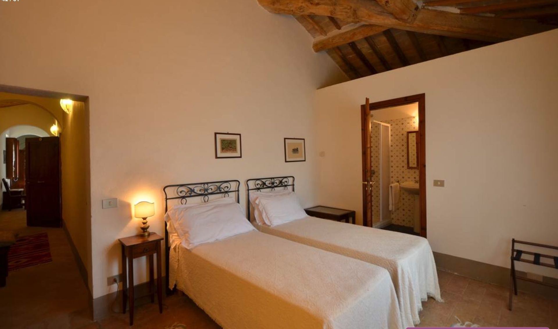 Aparcamiento: dentro de la propiedad, seis plazas de aparcamiento. La Habitación con baño 3 con 2 camas individuales puede prepararse como doble a pedido, uniendo las dos camas;
