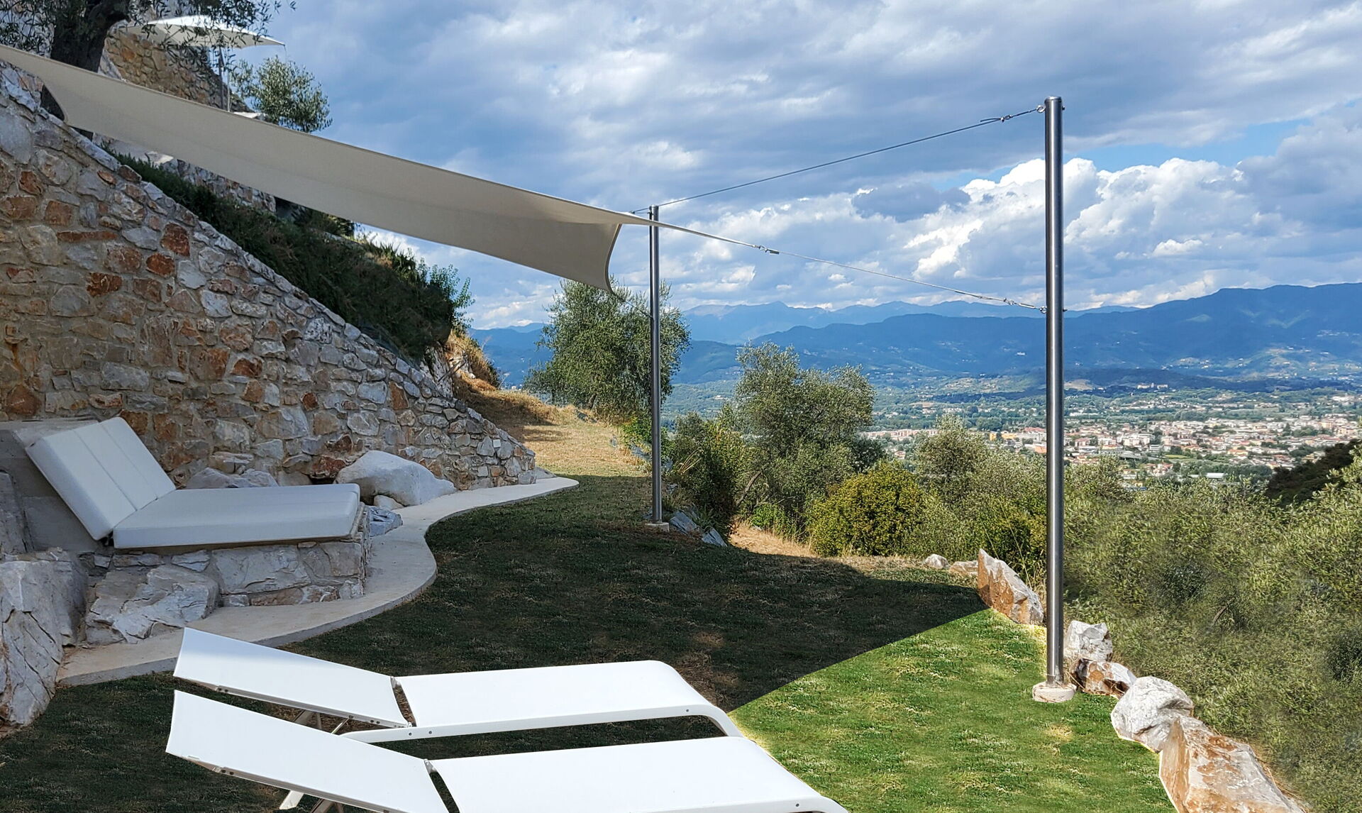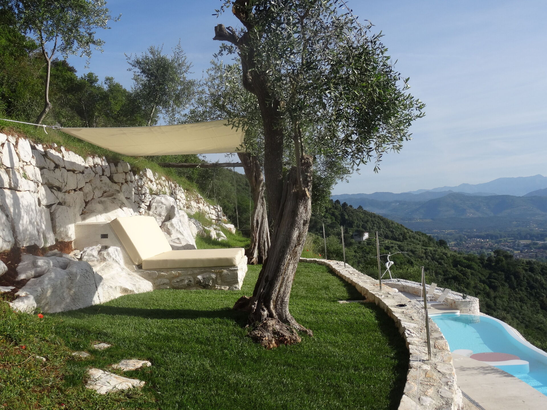 Designed by the owners themselves (both are artists, architects and interior designers), the property is a unique building: constructed on a hill of marble, it offers bright interiors with beautiful panoramic views of Lucca.