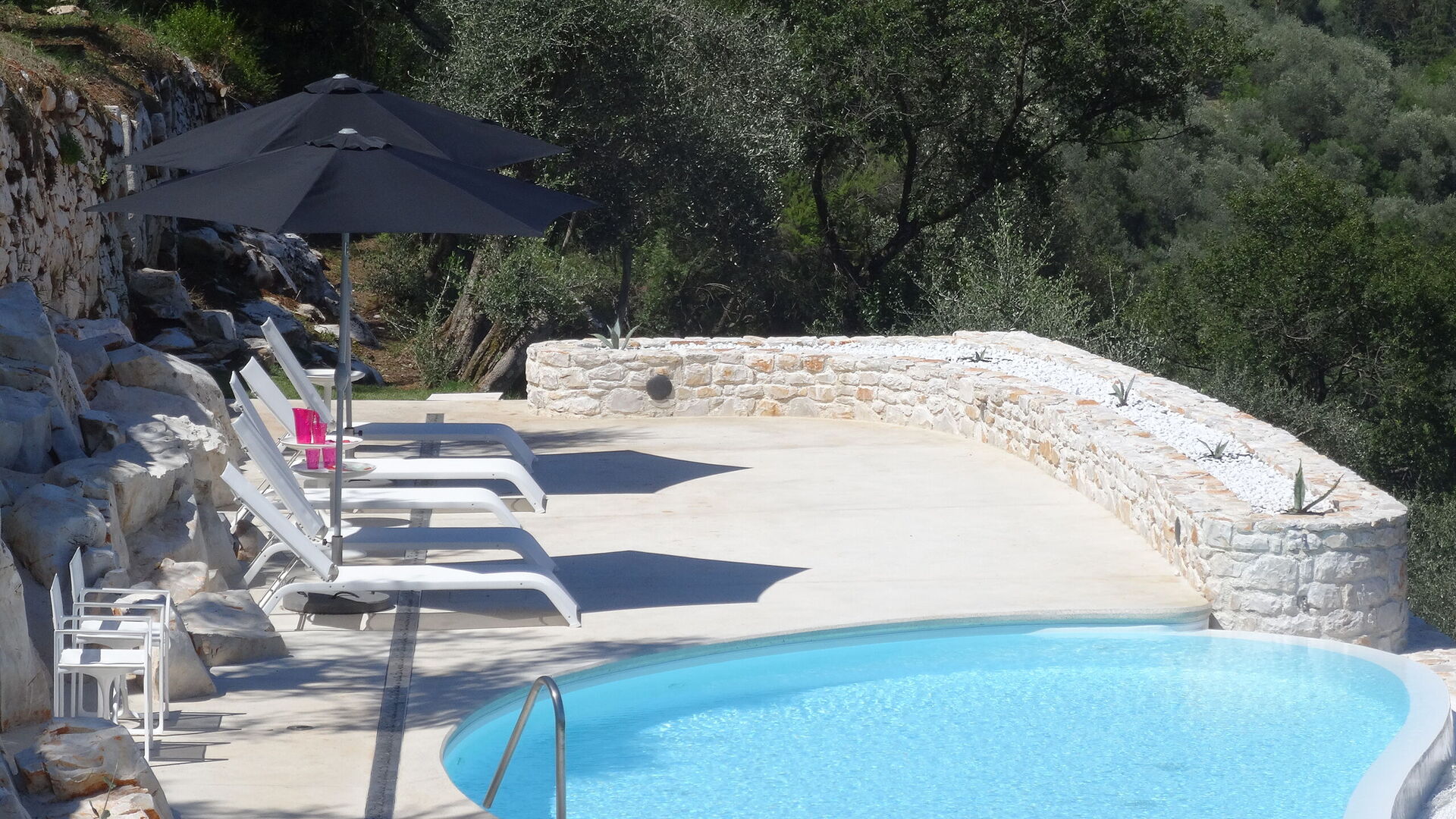 The villa is surrounded by 10 hectares of land with olive groves and woods.