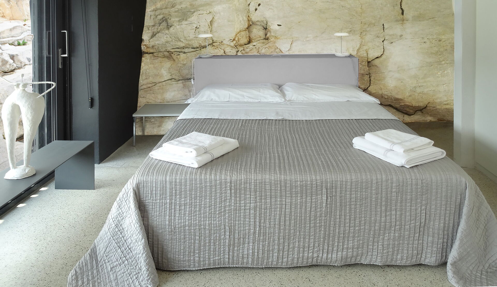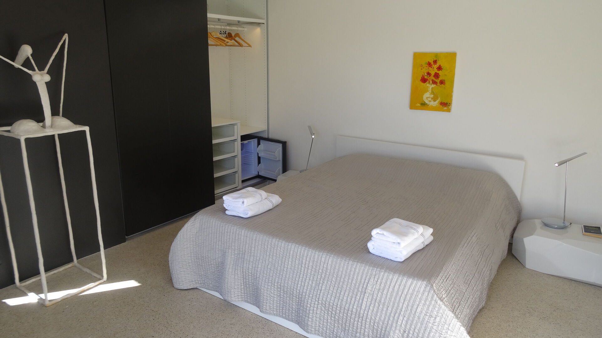 Habitación: cama doble, acceso a la terraza.