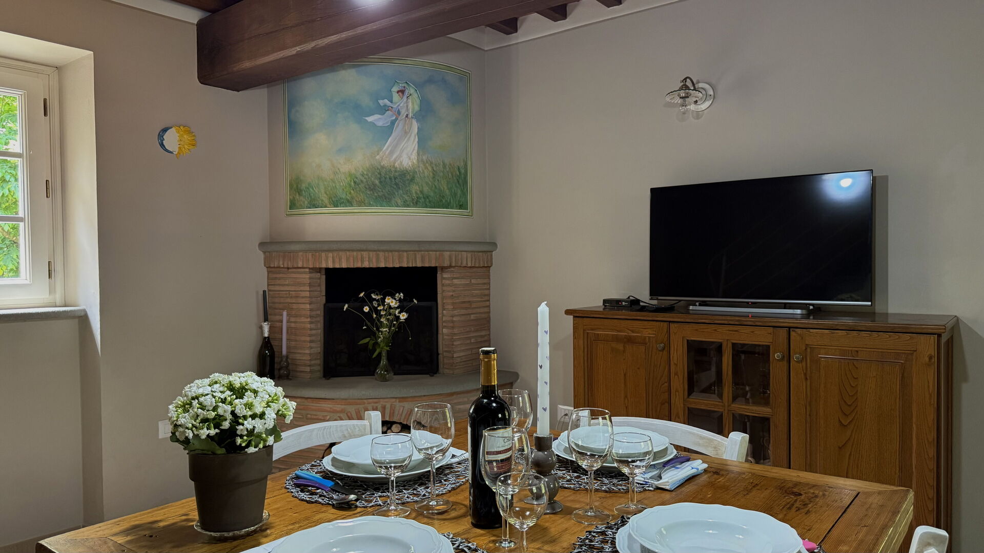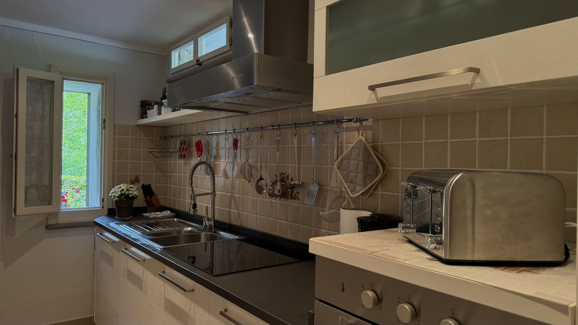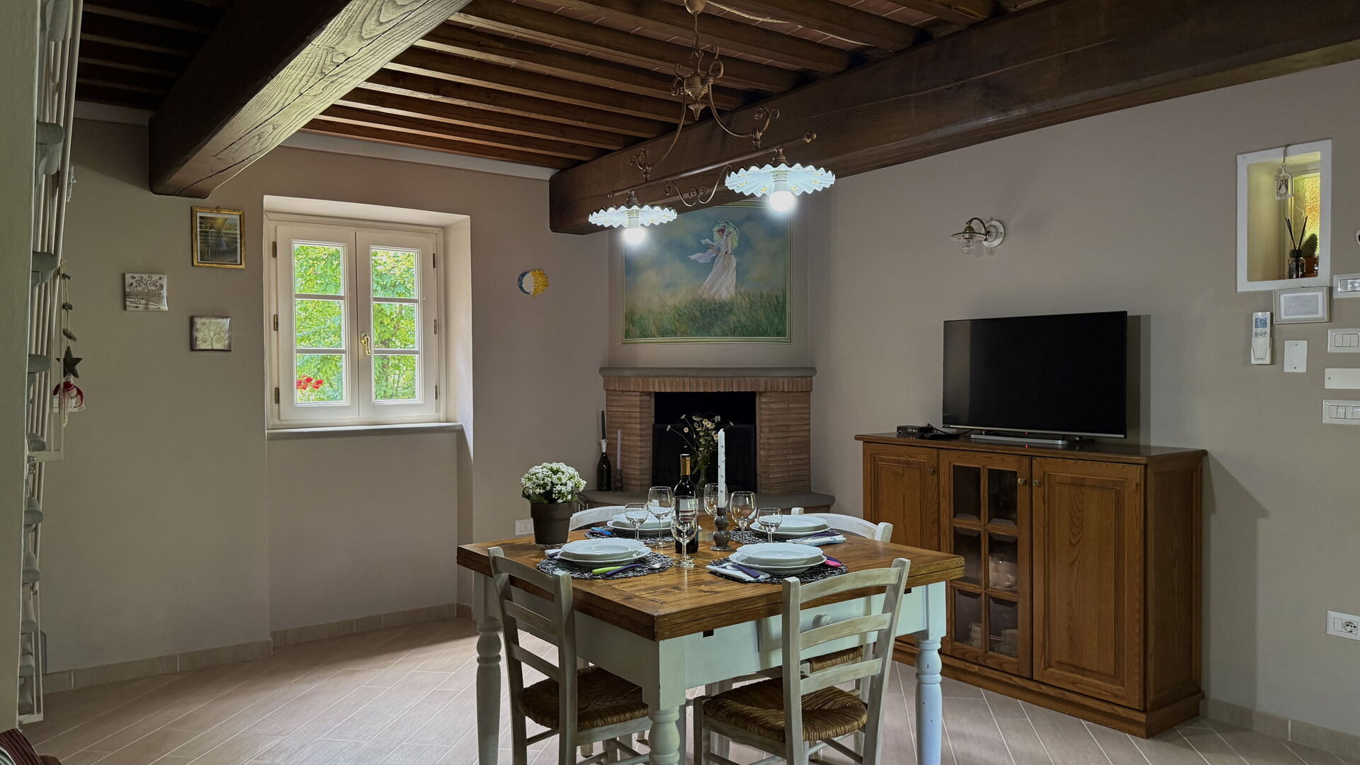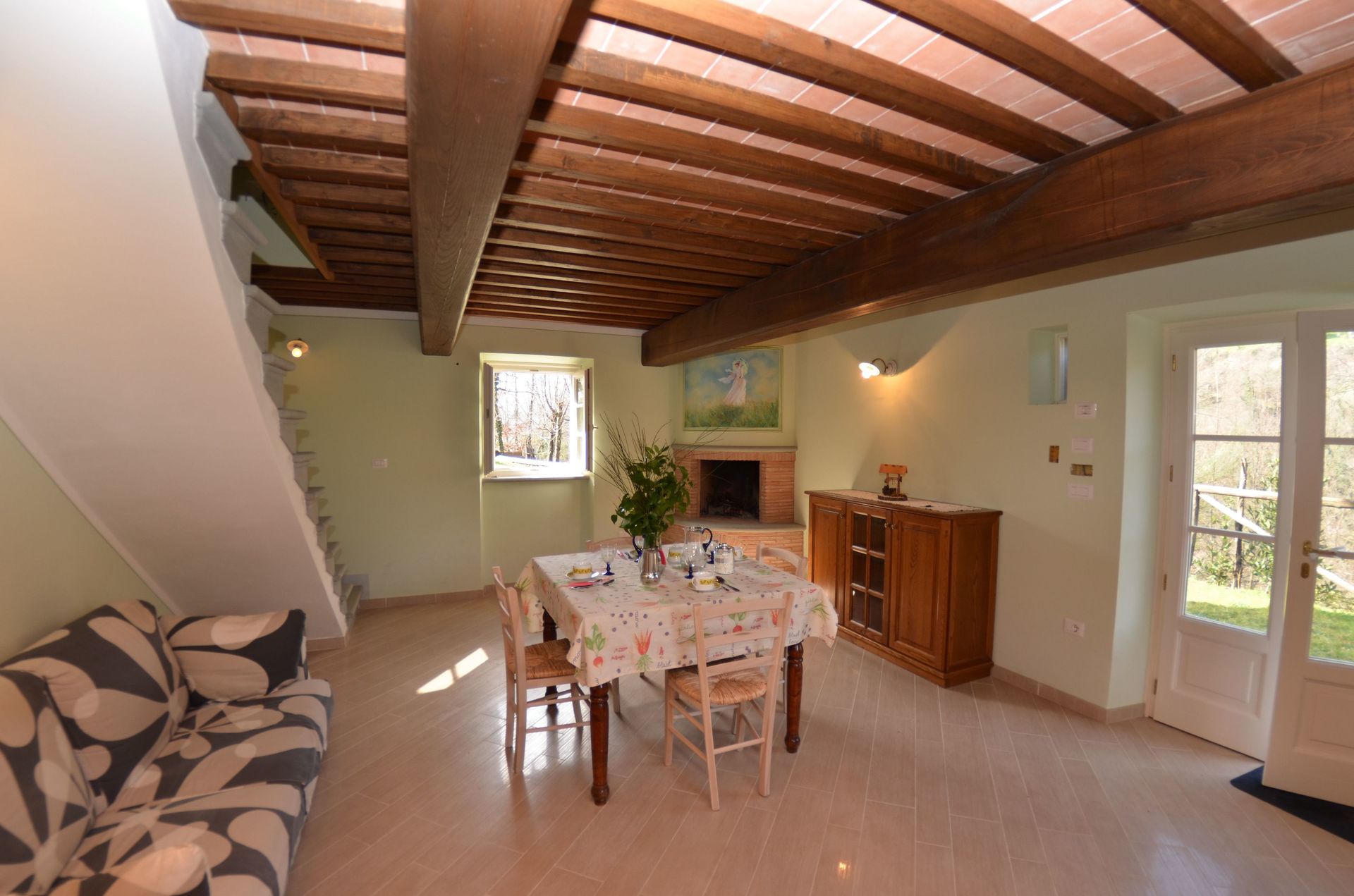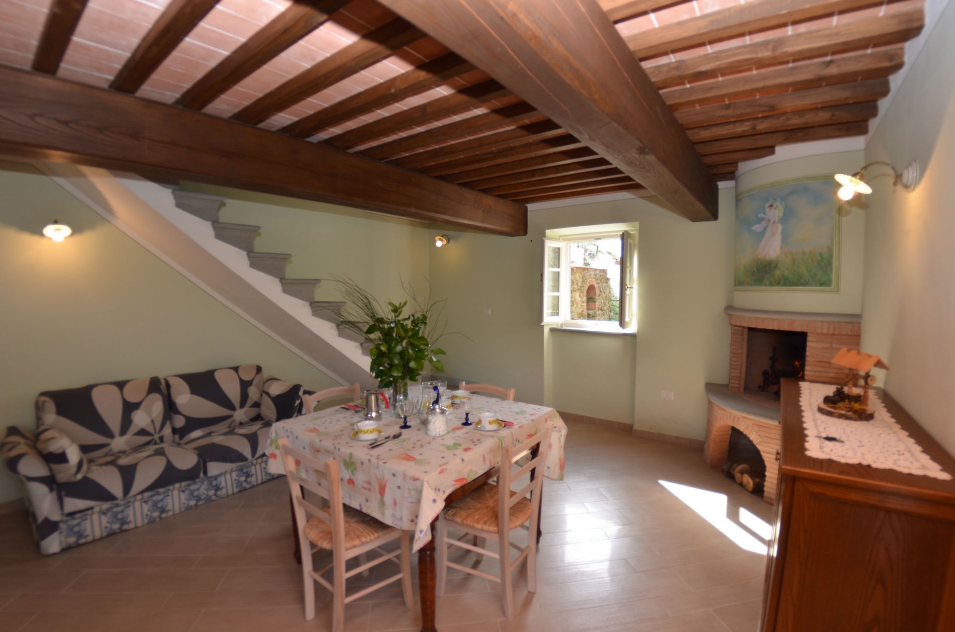 Después de llegar será bienvenido por el propietario u ama de llaves y encontrará una hermosa propiedad limpia y acogedora with views of las colinas and las montañas perfecta para unas vacaciones tranquilas en Toscana. Para su disfrute encontrará una piscina privada donde puede descansar disfutando de un buen refresco después de un día pasado a visitar lugares turísticos. Comer con familia y amigos es un aspecto de gran importancia en la cultura toscana. Aproveche de una cocina para preparar comidas utilizando productos locales durante sus vacaciones. La cocina incluye toaster, estufas y nevera, además de, muchas vajillas y cubiertos para hasta seis personas.