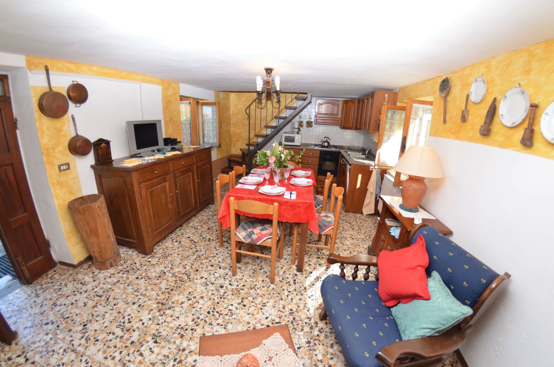 Tras llegar encontrará una estupenda propiedad limpia y acogedora con vista las montañas perfecta para unas vacaciones tranquilas en Toscana. Independientemente de como pasa sus días - shopping, excursiones, museos o simplemente visitando y descubriendo el paisaje, cuando llega a casa puede relajarse con amigos y familia cerca de la piscina para un final de día perfecto en Toscana. Para su placer, afuera hay patio de recreo y barbacoa. Hay una cocina incluso máquina de café, microondas y nevera, así como , muchas vajillas y cubiertos para hasta seis personas. Si prefiere comer afuera 'al fresco', hay el jardín, un espacio bien equipado donde puede disfrutar el buen clima comiendo afuera.