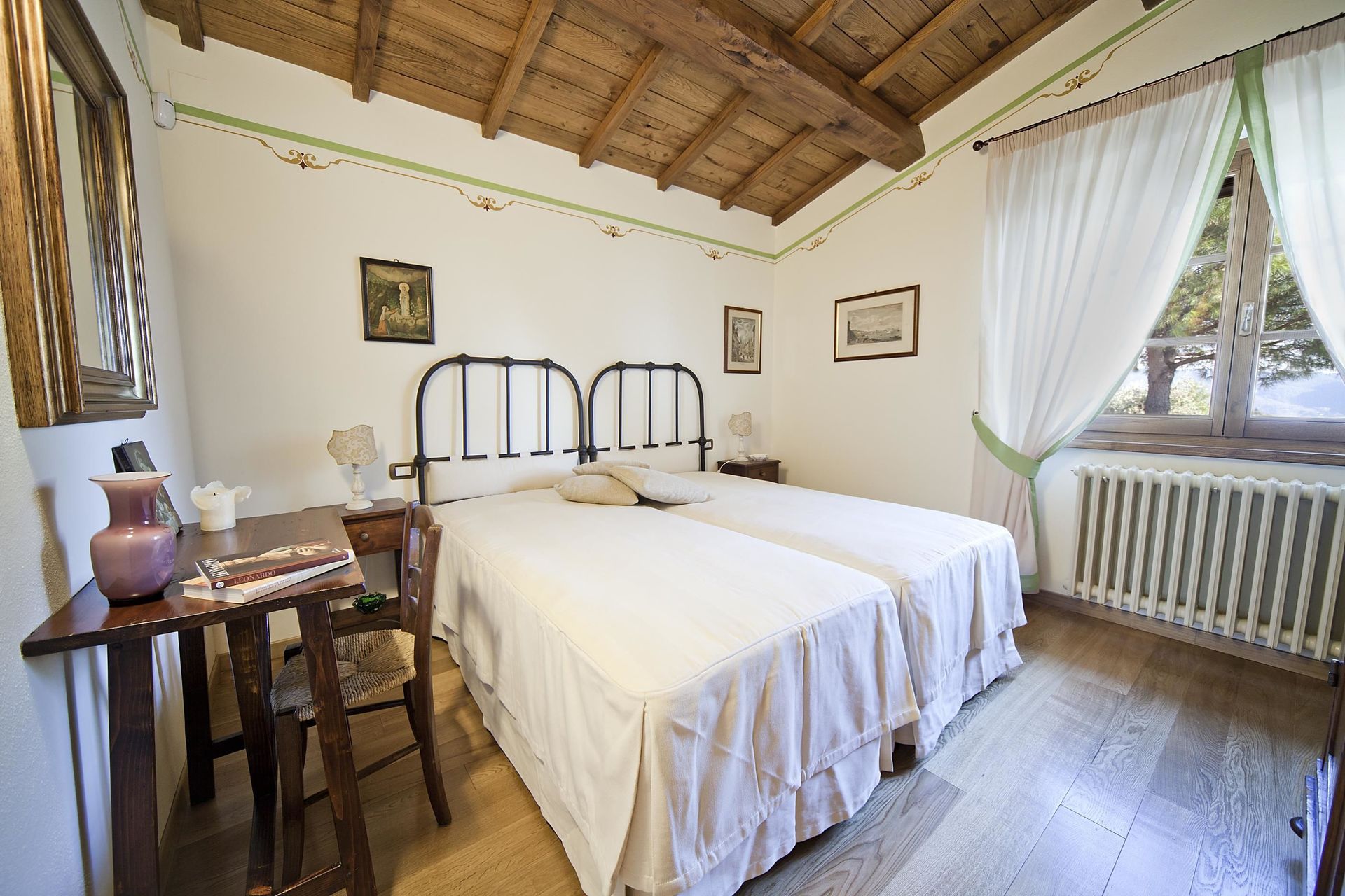 Habitación 1: dos camas individuales, aire acondicionado, escritorio.