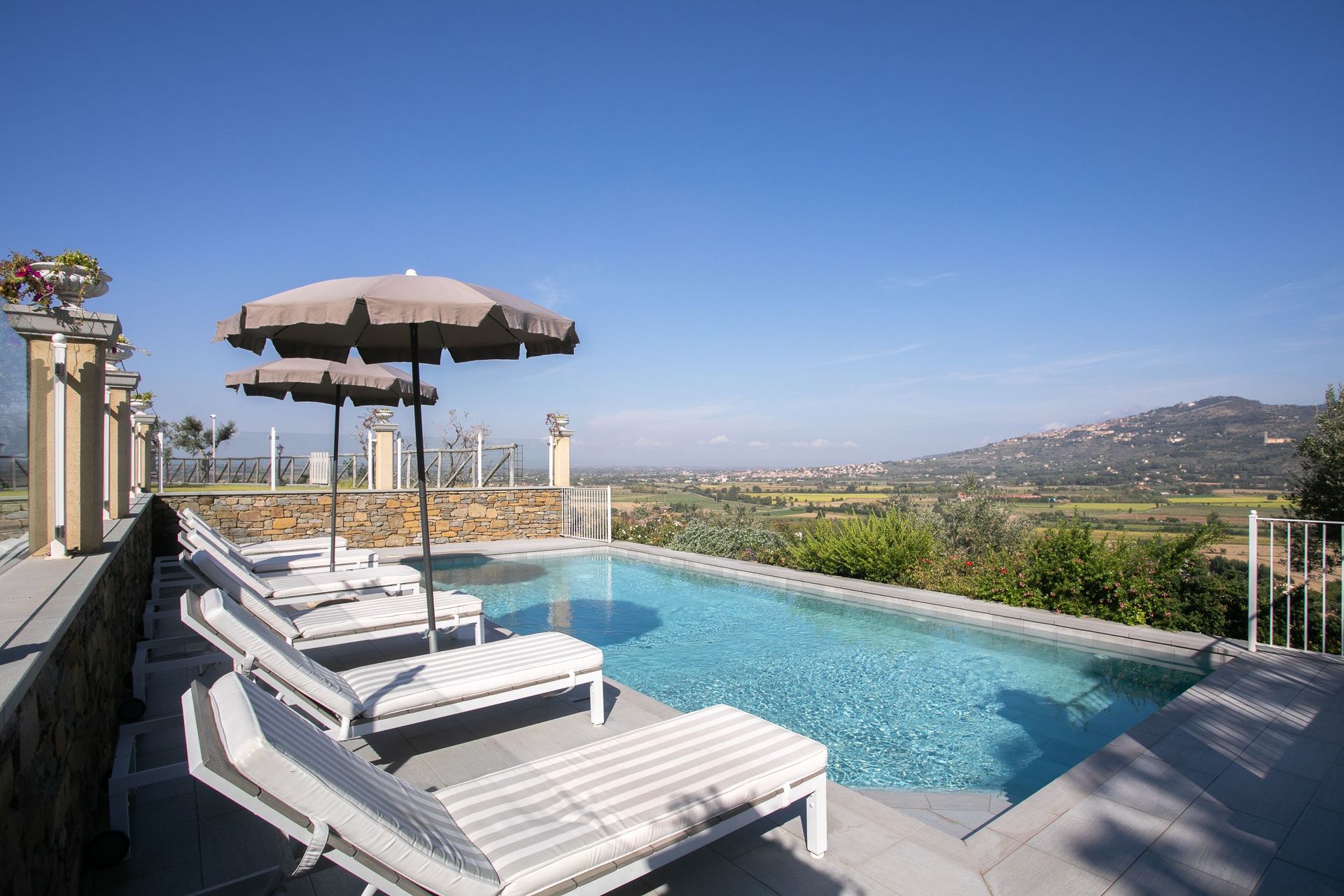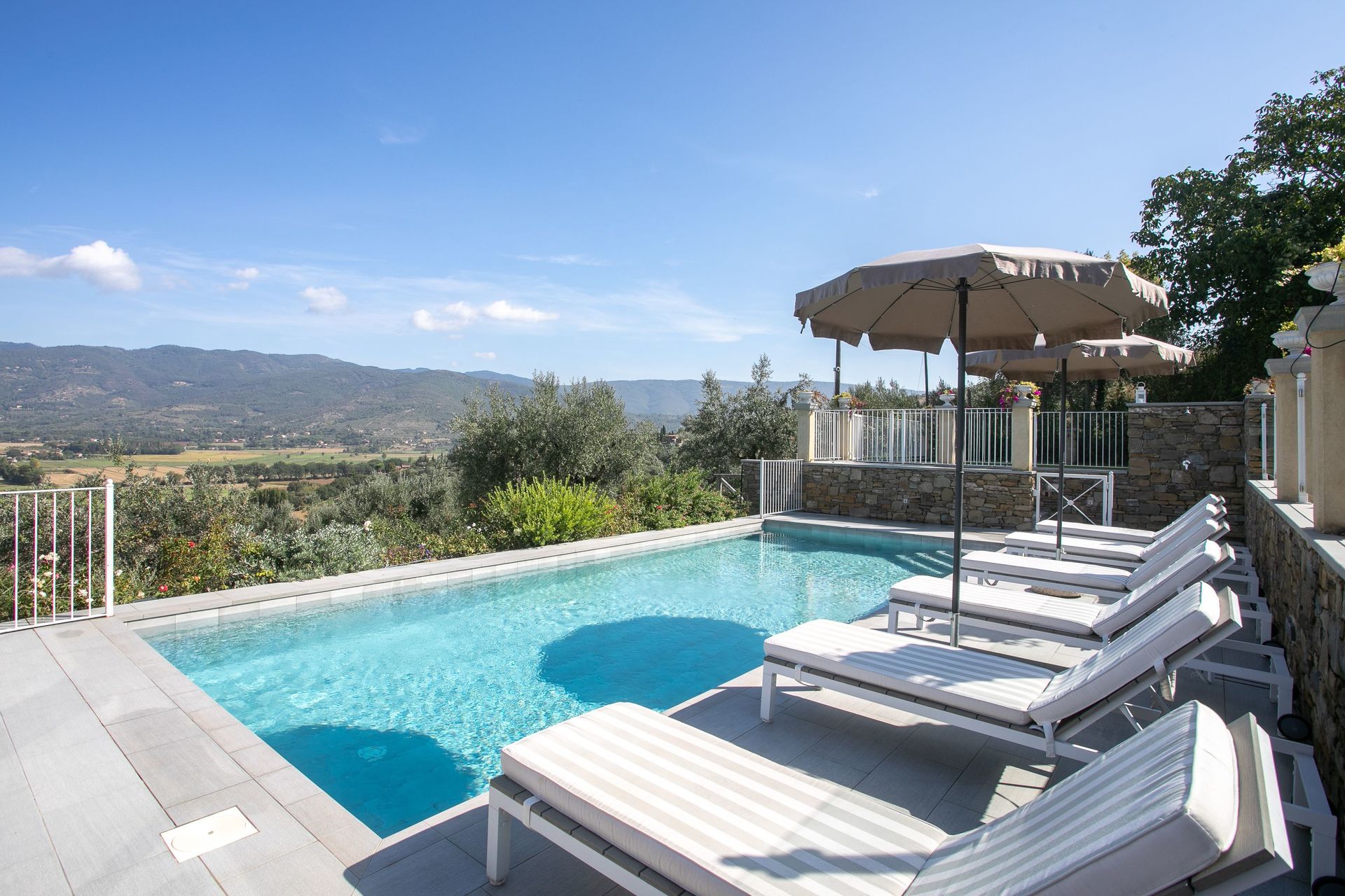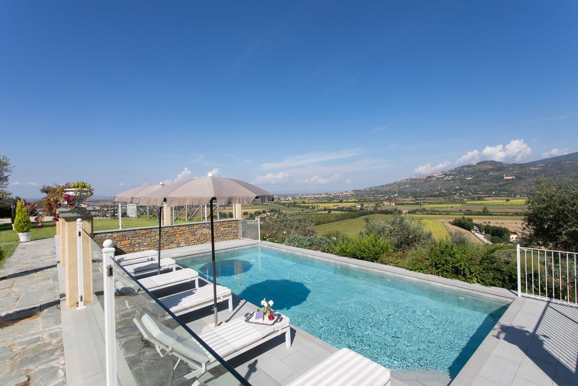 Had a wonderful week at this villa. Everything about the property is first class. Our host met us at the villa to give us the keys & explain all the features. This is a gated villa. The views are incredible as the villa is up high on a hill. You can see Cortona from the villa. All of the decorations were beautiful. The bathroom/showers were very clean & really nice. The beds were comfortable. Plenty of room everywhere to relax. The kitchen has all the things you need to cook with. There is a washing machine also. We sat by the pool in the sun. Very relaxing too. There are 2 TV’s and 2 areas with sofas to hang out in. The entire property is pretty spectacular.