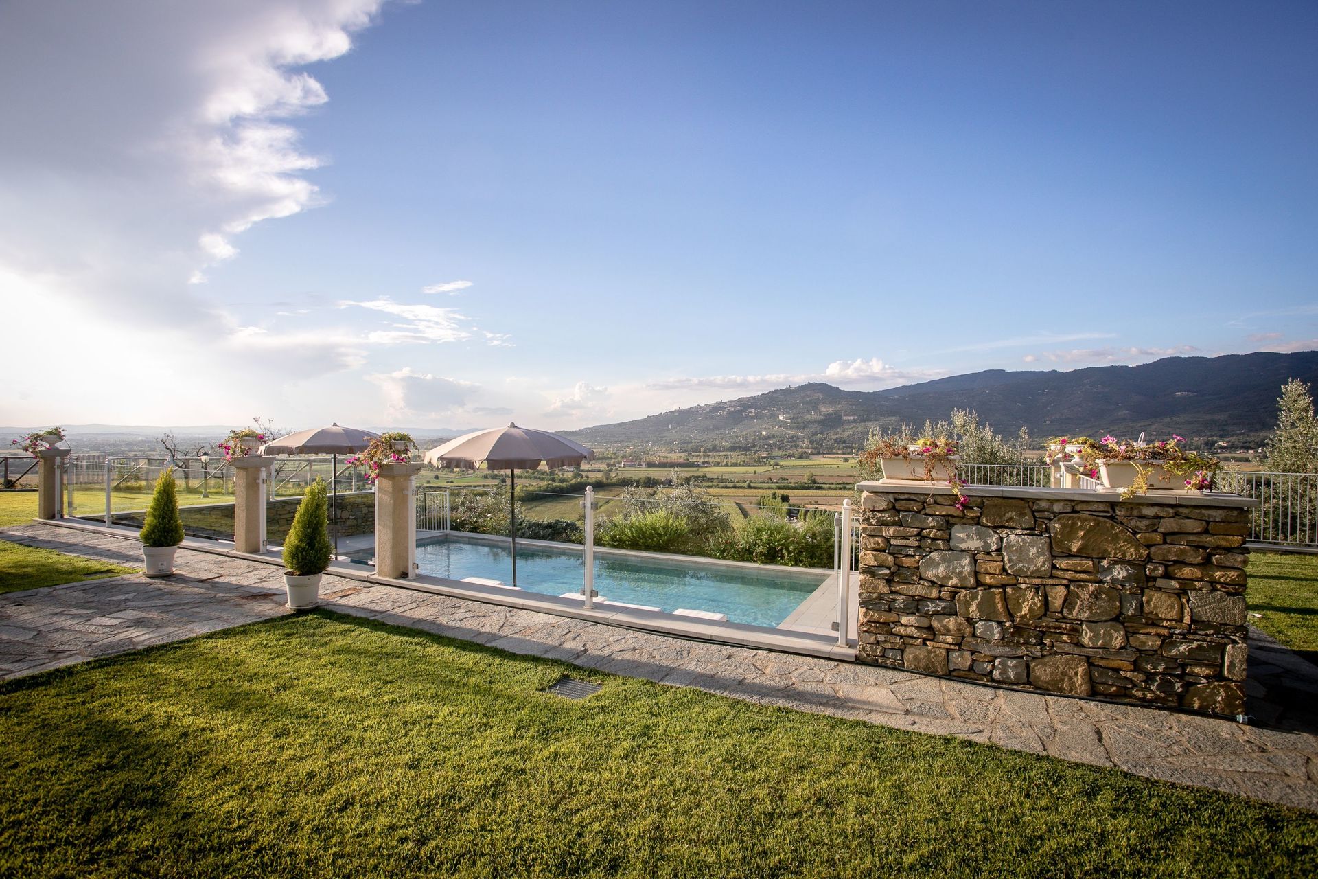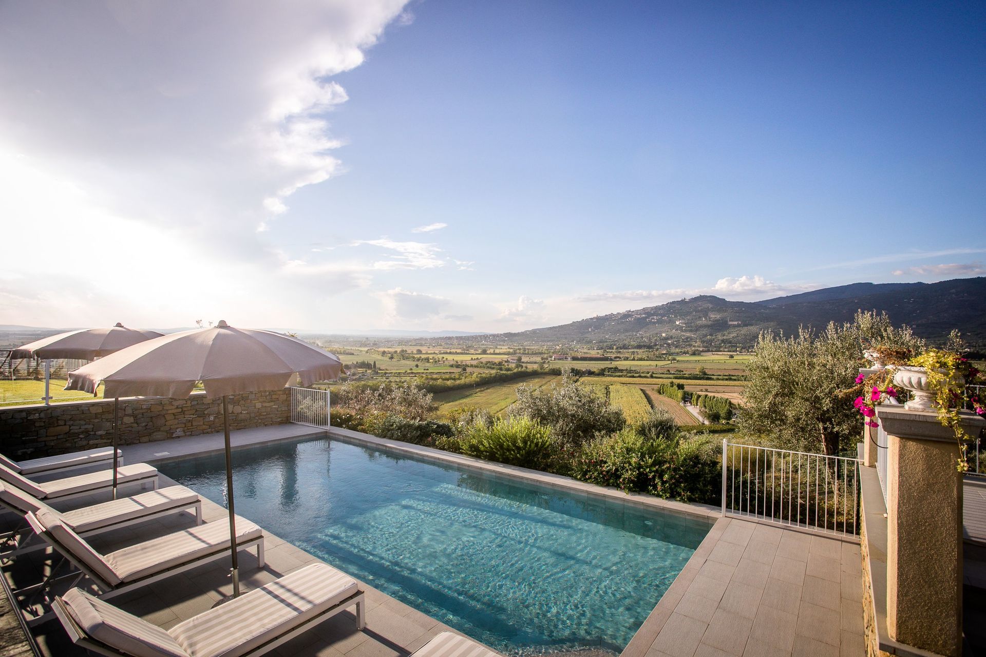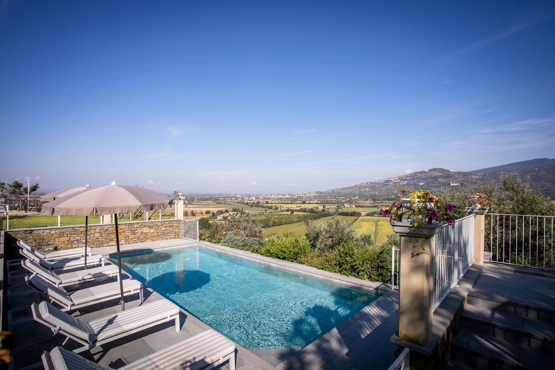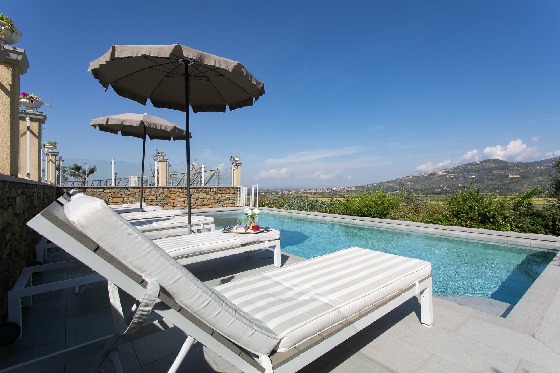 Had a wonderful week at this villa. Everything about the property is first class. Our host met us at the villa to give us the keys & explain all the features. This is a gated villa. The views are incredible as the villa is up high on a hill. You can see Cortona from the villa. All of the decorations were beautiful. The bathroom/showers were very clean & really nice. The beds were comfortable. Plenty of room everywhere to relax. The kitchen has all the things you need to cook with. There is a washing machine also. We sat by the pool in the sun. Very relaxing too. There are 2 TV’s and 2 areas with sofas to hang out in. The entire property is pretty spectacular.