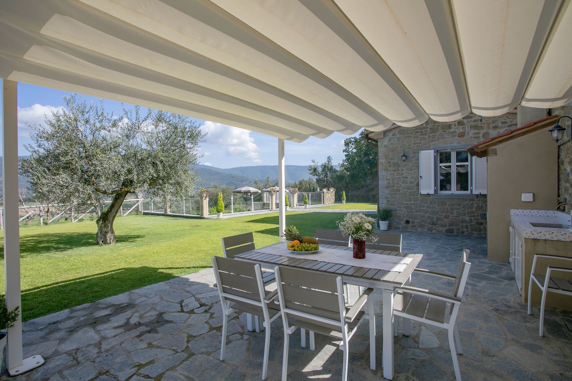 Fantastic villa, fitted to a very high standard. Gardens and pool beautiful and well maintained with a large outdoor dining area. Situated in a very quiet spot on hill with views to Cortona. Can walk to a local pizza restaurant, car needed otherwise. Owner showed us around on arrival and was available to message throughout, although we didn’t need it. I have no hesitation in recommending this villa,