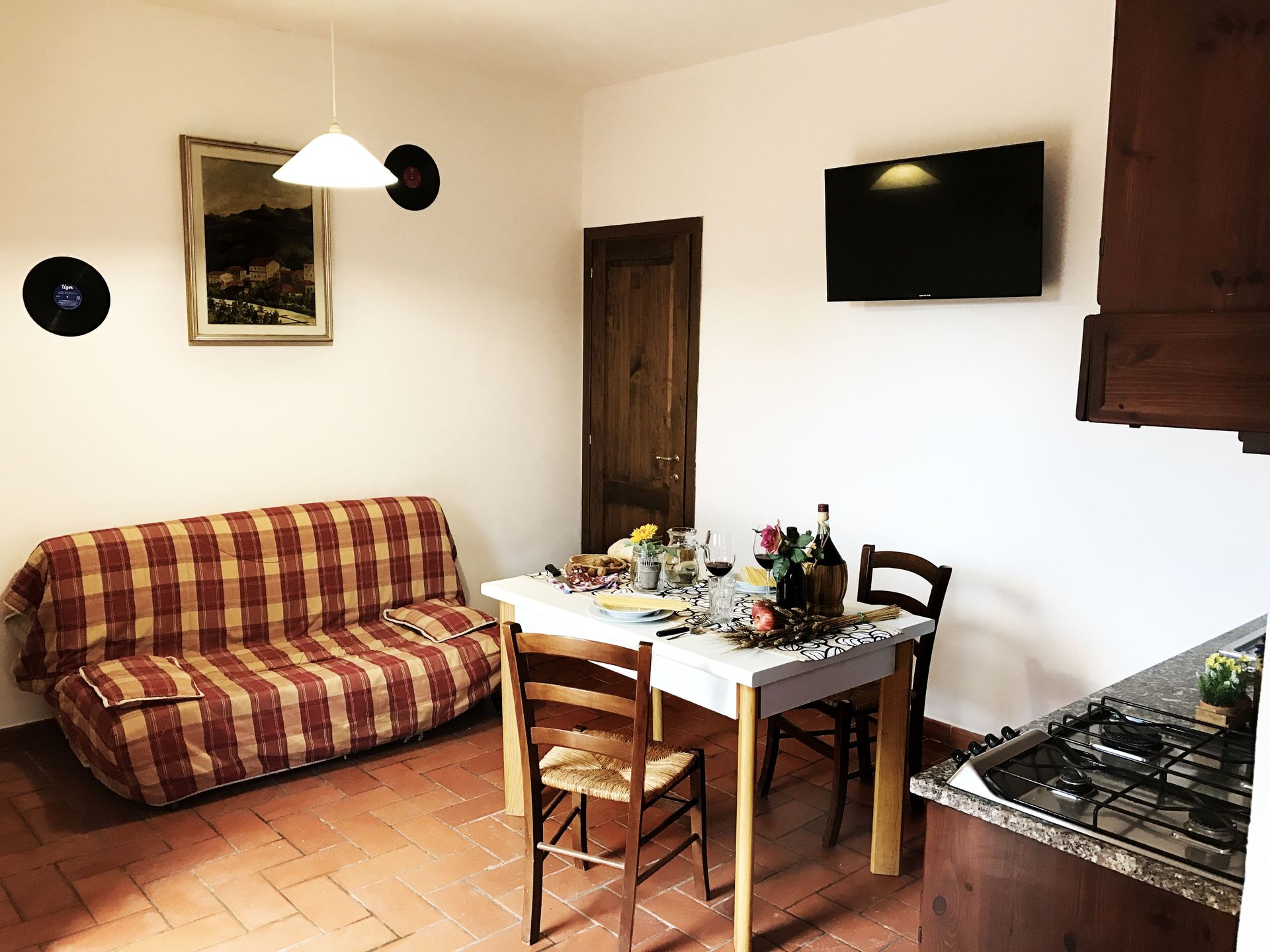 Il Chiantico 22 is a two-room apartment (2 +2) on 2 floors, kitchenette, living room and sofa bed on the ground floor; double bedroom with bathroom in rooms on the first floor. Shared outdoor space (with 21 and 23) but with private outdoor table and chairs.