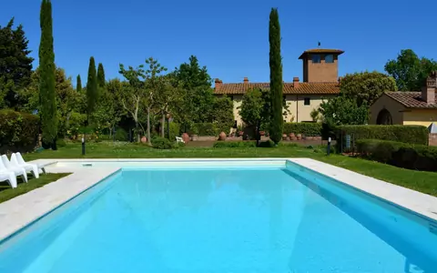 Ubicada en lo alto de una colina bañada por el sol a tan solo 2 km sobre Castelfiorentino, en el corazón de la Toscana, Italia, Tassinaia es una hermosa casa de campo del siglo XIX completamente renovada, rodeada de exuberantes viñedos. Esta villa excepcional combina el encanto histórico con la comodidad moderna, ofreciendo a los huéspedes un refugio tranquilo y apartado mientras permanece perfectamente posicionada a corta distancia de los destinos más celebrados de la región. Ubicada dentro de una propiedad completamente cercada de 2 hectáreas, la casa cuenta con un magnífico jardín ideal para relajarse y paseos tranquilos, así como un jardín privado en terrazas adornado con un césped bien cuidado y flores de temporada. Los huéspedes disfrutan de WiFi gratuito en toda la propiedad, garantizando una conectividad sin interrupciones durante su estancia. Hay un área de estacionamiento dedicada disponible en el lugar para mayor comodidad. Para aquellos que disfrutan de un estilo de vida activo, una cancha de tenis se encuentra a tan solo 1 km de la propiedad, mientras que los amplios terrenos y los acogedores espacios al aire libre ofrecen mucho espacio para relajarse y disfrutar de la campiña toscana en total privacidad.