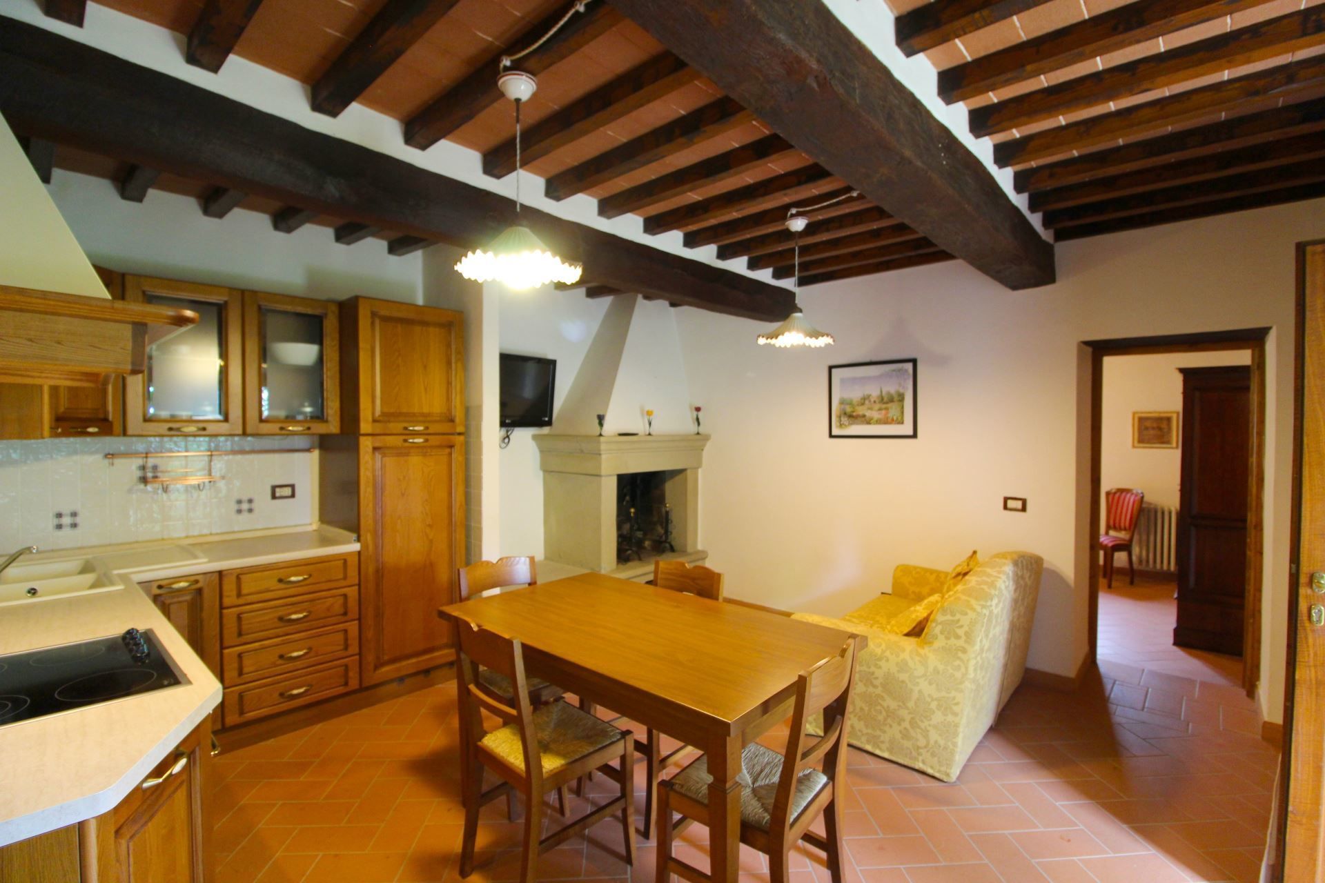 Adjacent to the kitchen is the paved area with a stone barbecue and wood-burning oven, and equipped with tables and chairs, where you can enjoy pizza and barbecue with your family or friends. To make your holiday even richer and more enjoyable, you can request tastings of typical Tuscan products, massages with experts in the field and guided mountain bike tours of the area. Edoardo, the owner, will be happy to help you.