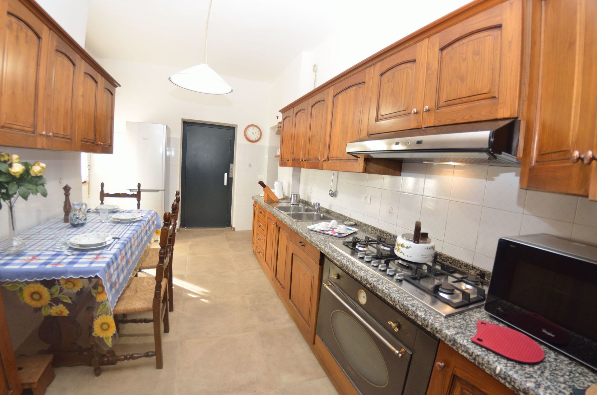 Cocina: lavavajillas, frigorífico, congelador, microondas, cocina de gas, horno, tostadora, máquina de café italiana, máquina de café americana.
