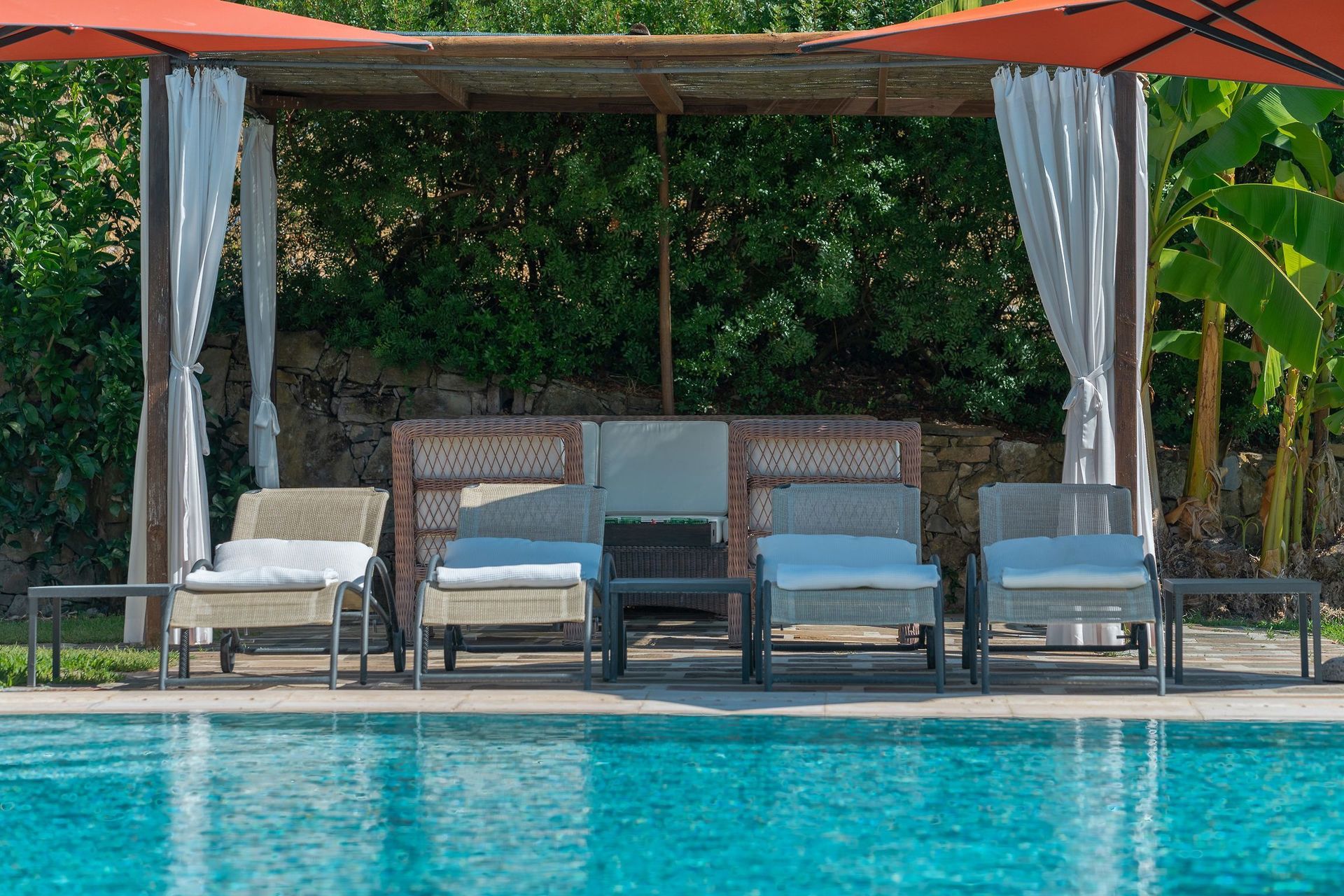 Salón: dos sofas (gente: 4), tres sillones, escritorio, chimenea, mesa de comedor (gente: 14), WIFI internet, aire acondicionado, tv vía satélite, mosquitero, acceso al jardín, acceso a la terraza.