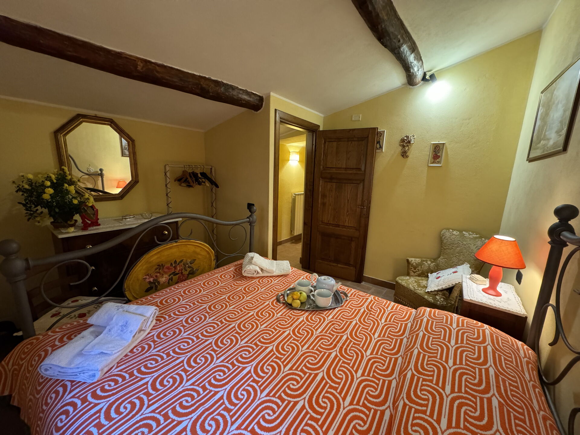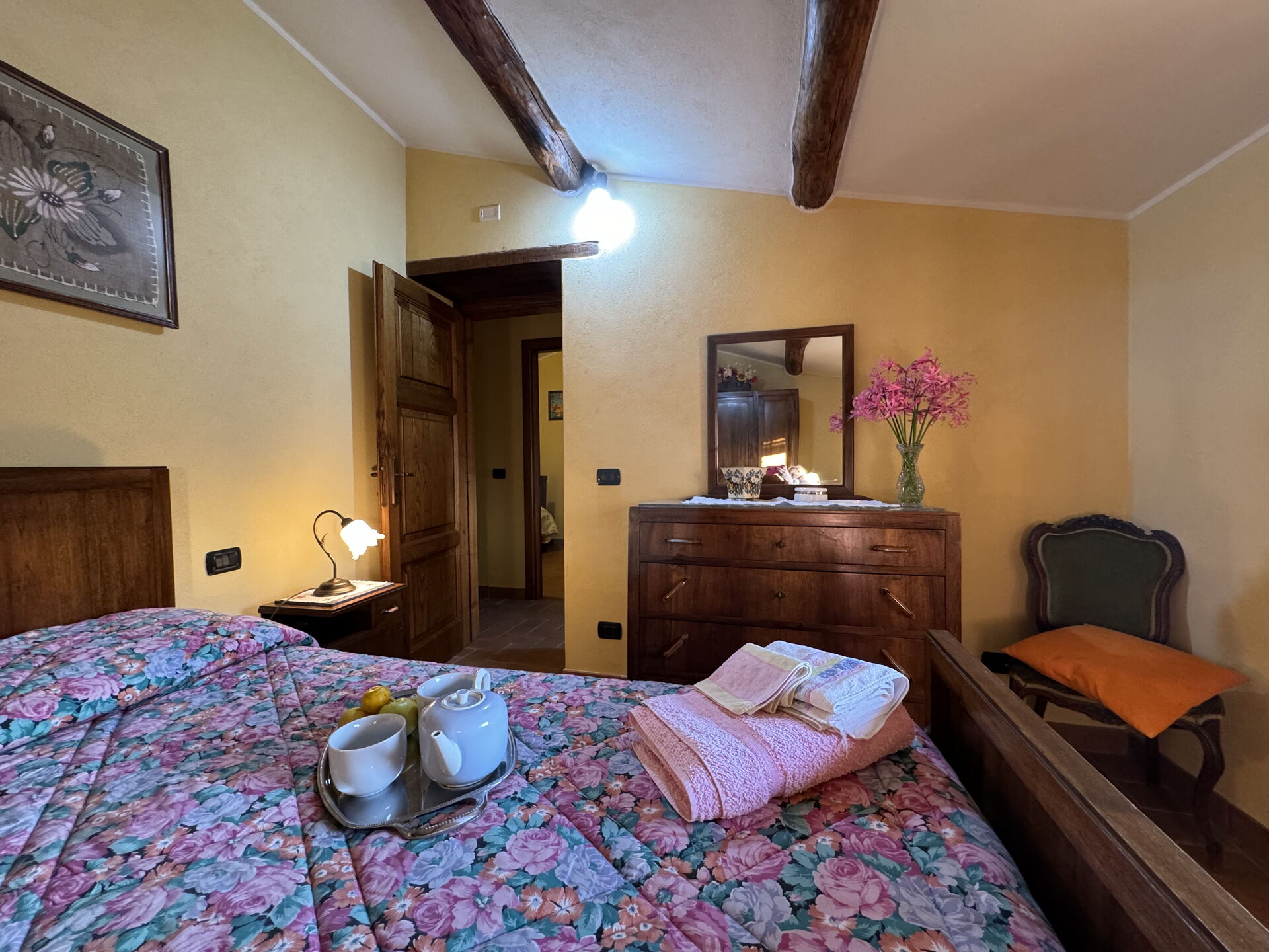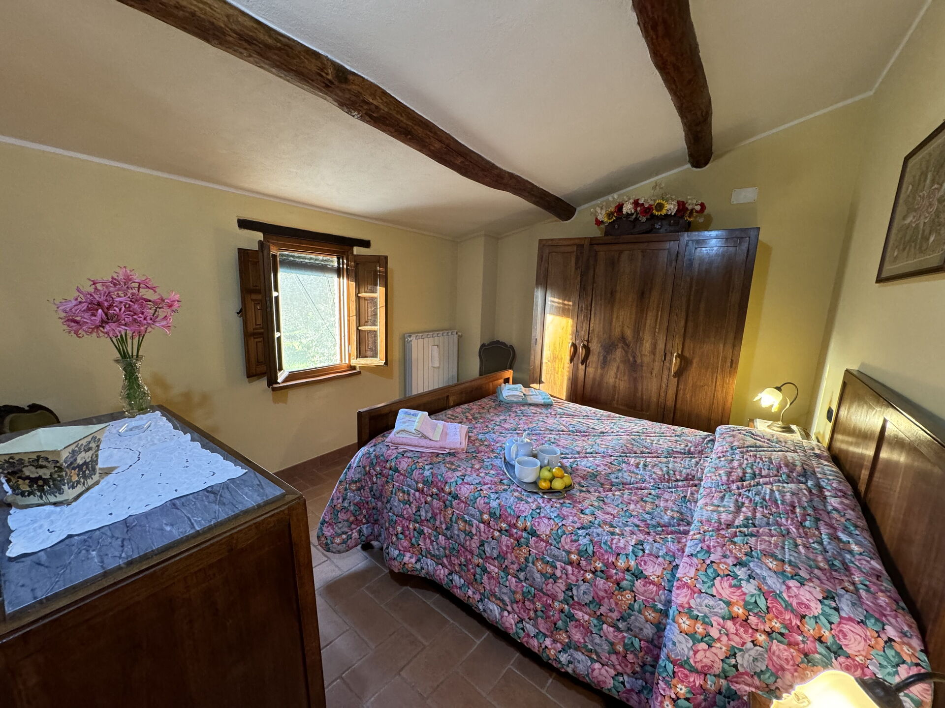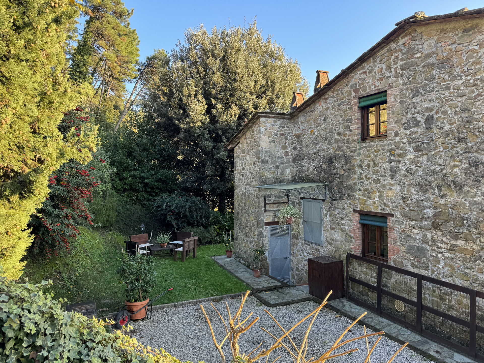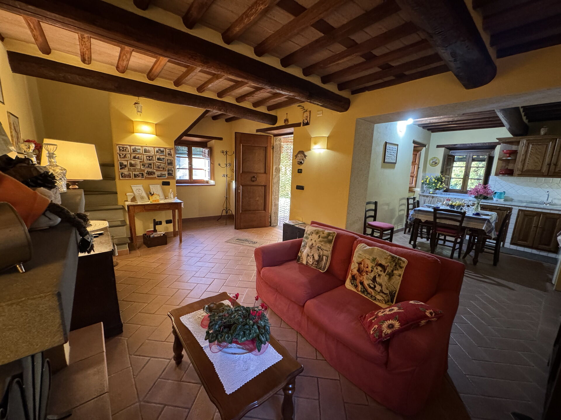 Después de llegar encontrará una estupenda propiedad limpia y acogedora con vista las colinas ideal para unas vacaciones tranquilas en Toscana. Independientemente de como pasa sus días - excursiones, museos, shopping o simplemente visitando y descubriendo el paisaje, cuando llega a casa puede relajarse con amigos y familia cerca de la piscina para un final de día perfecto en Toscana. Hay una cocina incluso máquina de café, estufa y nevera, así como , muchas vajillas y cubiertos para hasta seis personas. Si prefiere comer afuera 'al fresco', hay el jardín, un espacio bien equipado donde puede disfrutar el buen clima comiendo afuera.