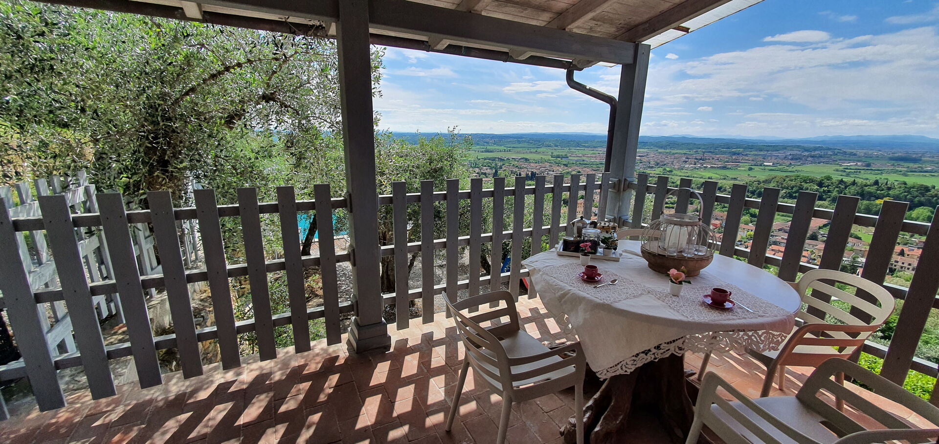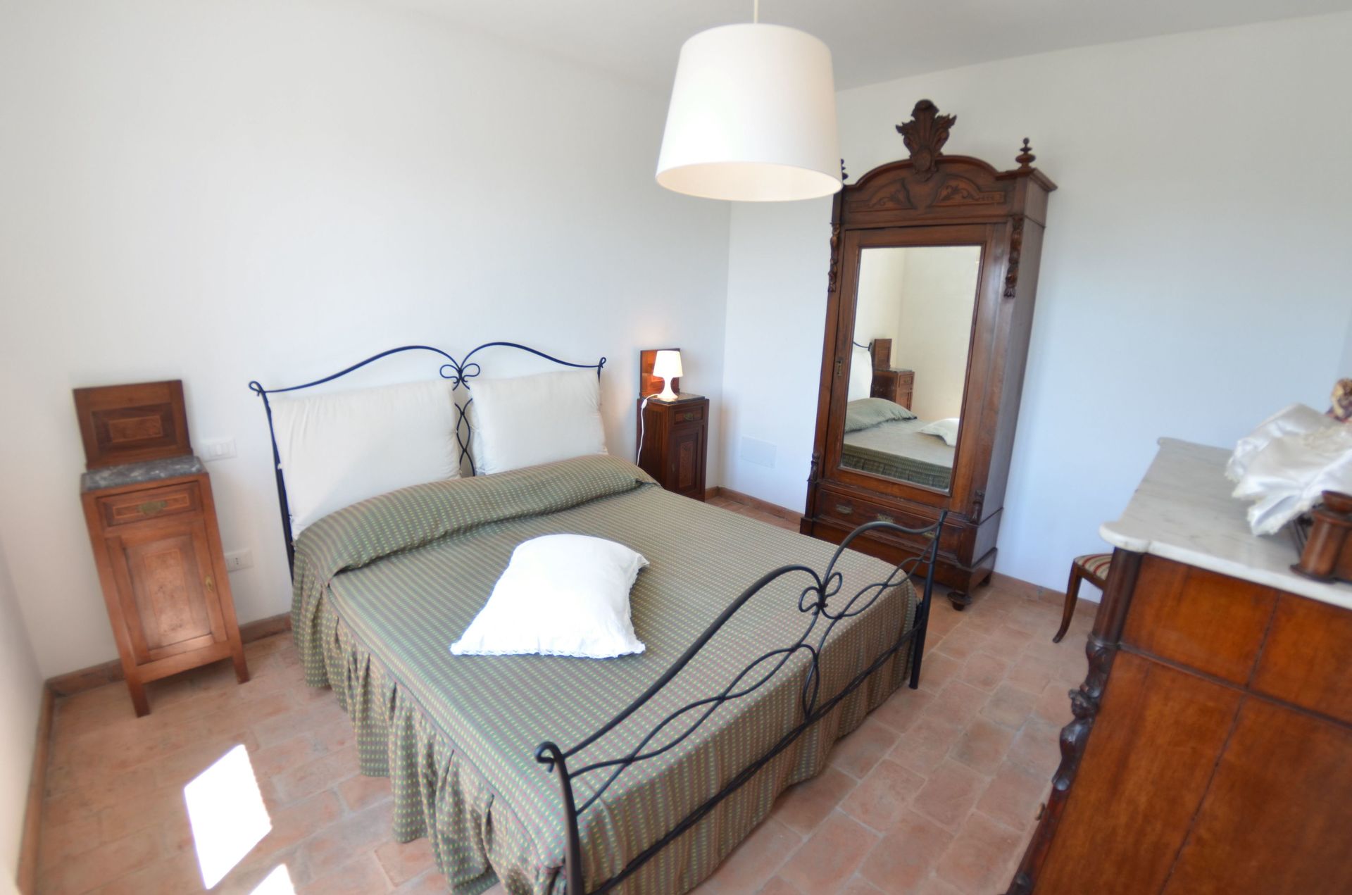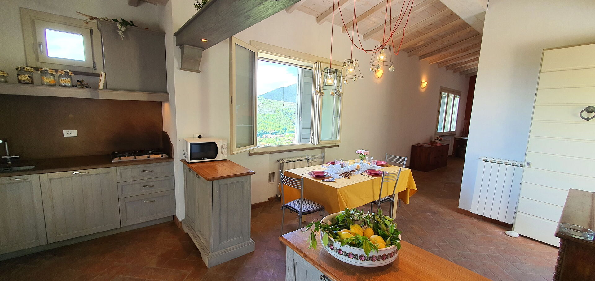 Después de llegar a Podere San Martino encontraras una hermosa propiedad limpia y acogedora con vista sobre las colinas perfecta para unas vacaciones relajantes en Toscana. Después un día pasado a visitar lugares turísticos, disfrute de una buena copa de vino con sus amigos y su familia al lado de la piscina - lo mejor para descansar después de un largo día. Afuera encontrará parrilla y parque infantil. Hay una cocina incluso máquina de café, microondas, tostador, estufa y nevera, así como , muchas vajillas y cubiertos para hasta seis personas. Si prefiere comer afuera 'al fresco', hay la veranda, un espacio bien equipado donde puede disfrutar el buen clima comiendo afuera.