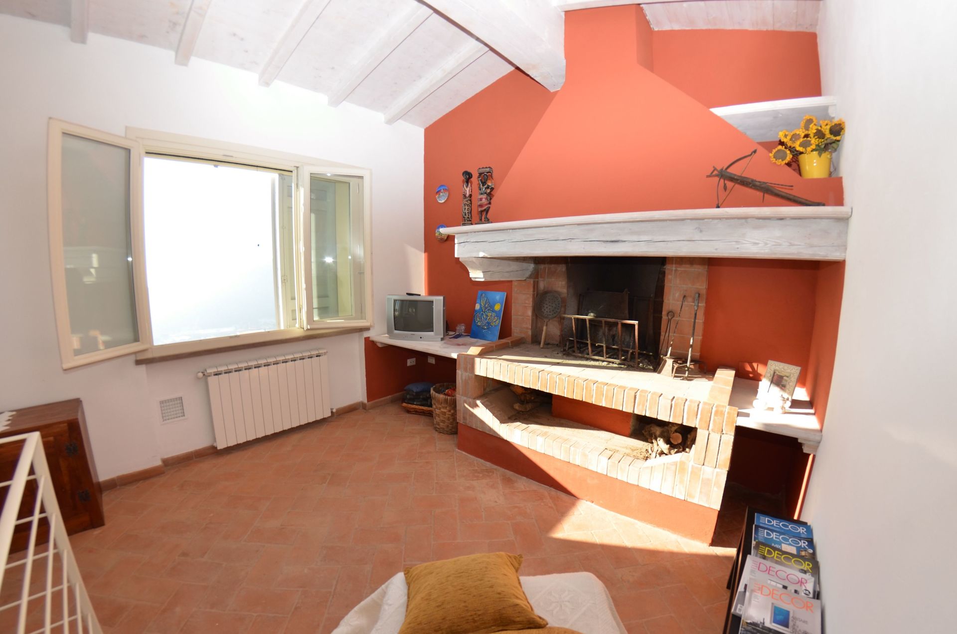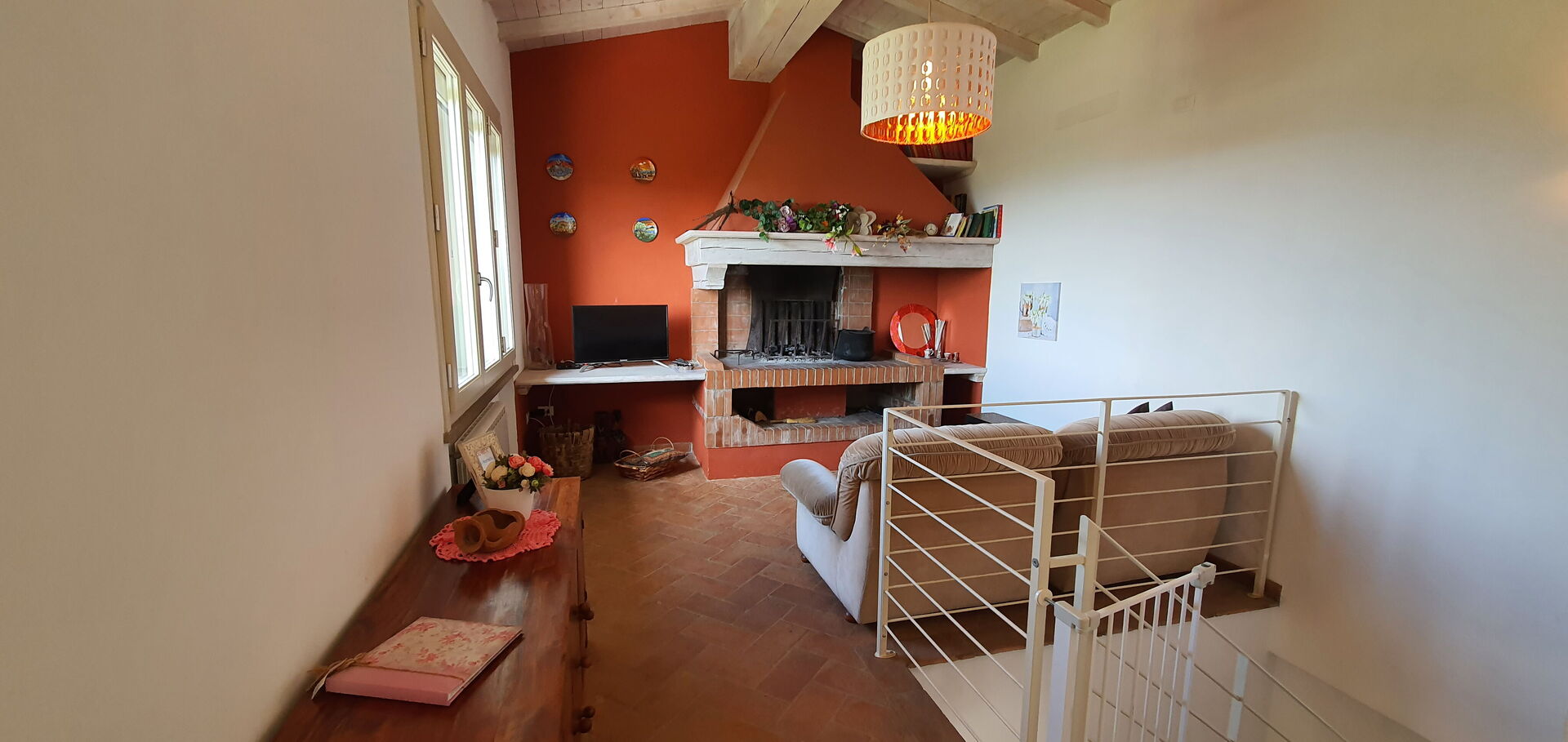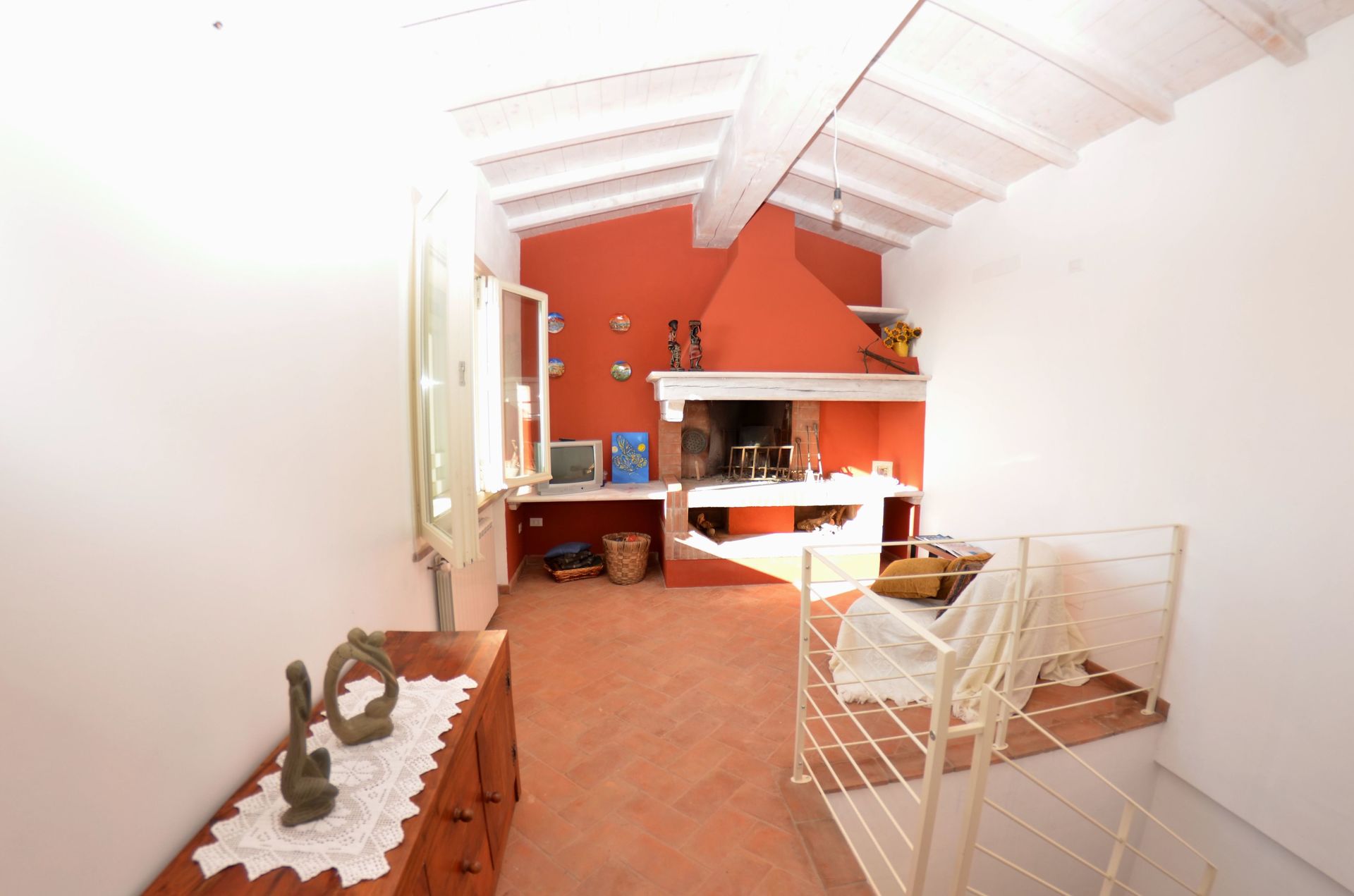 Salón: sillón, chimenea, tv vía satélite.
