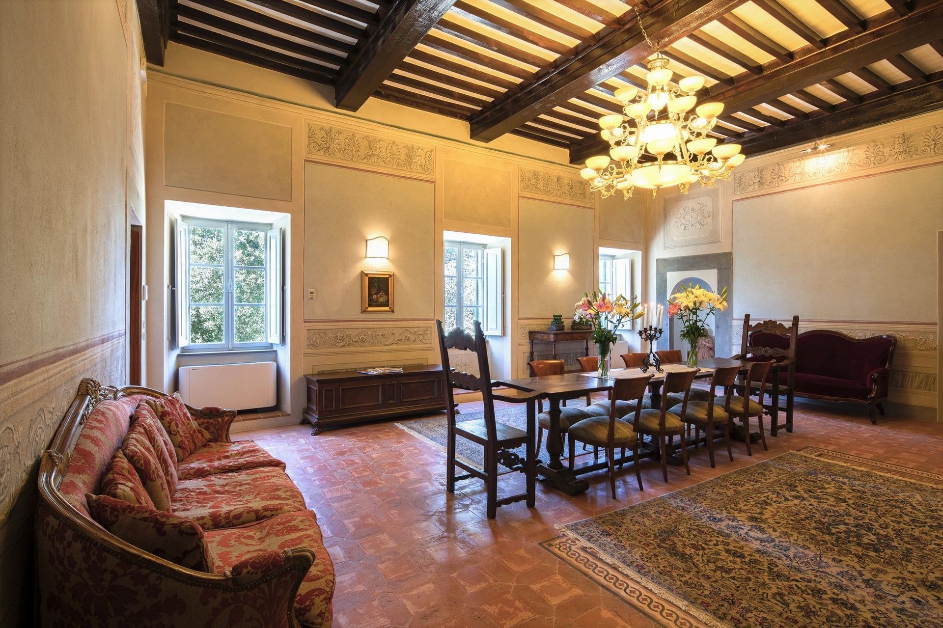 Villa Ivana - Cortona está situada sólo 2 km de distancia de Ossaia (Italia), y sólo a 5 km de distancia desde Cortona. La propiedad Villa Ivana - Cortona es un hermosa propiedad(1052 m2) que incluye aire condicionado, piscina privada y WiFi. La propiedad puede acoger cómodamente 18 personas en nueve cuartos con diez baños. Si no quiere renunciar al golf durante sus vacaciones, tiene suerte! hay un club de golf cerca de esta propiedad.