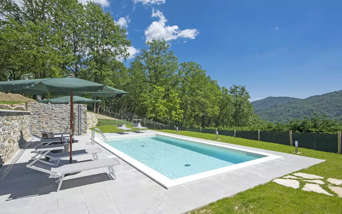 La piscina condivisa misura 8 x 4 metri con una profondità di 120 cm ed è disponibile dal 15 maggio al 30 settembre. Accanto alla piscina si trova una doccia esterna. Il giardino è arredato con mobili da esterno confortevoli, posizionati all'ombra degli alberi circostanti, e dispone di una zona barbecue per cene all'aperto.