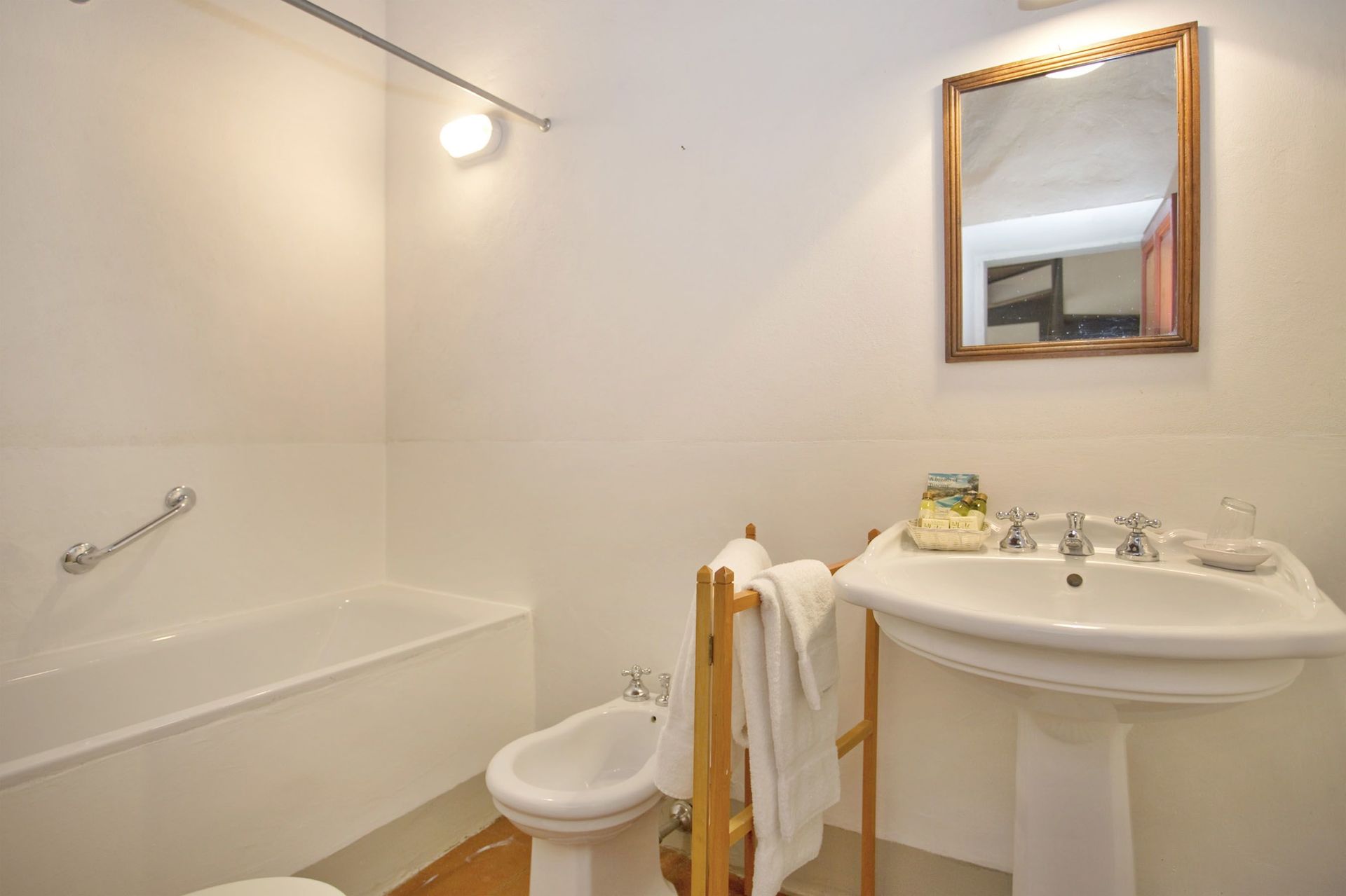 Baño: lavabo, baño, bidé, bañera, secador.