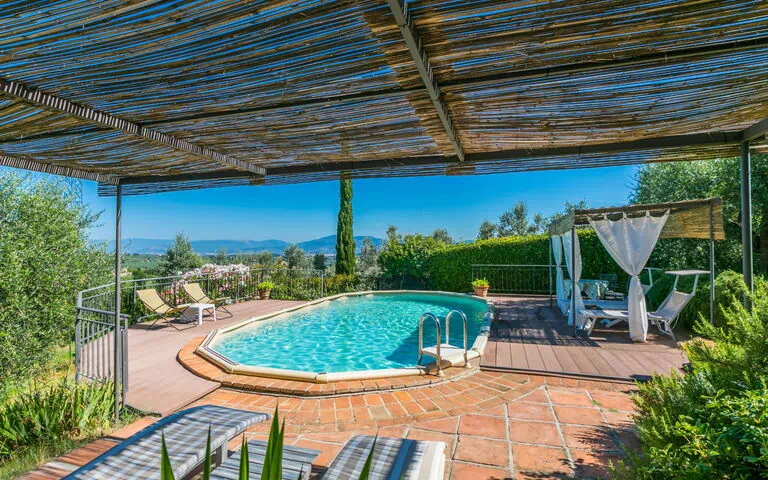Los espacios exteriores se distribuyen a través de un jardín en terrazas que abarca 6 hectáreas de terreno vallado, con árboles maduros, zonas de jardín natural y prados abiertos que crean una mezcla armoniosa del paisaje toscano. La piscina privada mide 9 x 4 metros con una profundidad de 140 cm y está disponible del 2 de mayo al 26 de septiembre. Una ducha exterior se encuentra en las proximidades de la piscina. Una terraza dedicada proporciona un espacio ideal para comer al aire libre y reuniones tranquilas; hay una mesa de ping-pong disponible para entretenimiento de los huéspedes.