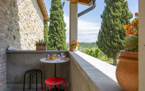 "Il Sorbo", 2 estancias casa de campo 63 m2 en el 1° piso. Vivienda adecuada para 2 adultos + 2 niños. Con mobiliario funcional: salón-dormitorio con 1 sofá-cama doble, chimenea, mesa de comedor, TV satélite, radio y calefacción eléctrica. Salida al balcón. 1 dorm. con 2 camas y 1 cama de matrimonio (160 cm). Cocina abierta (horno, 4 fuegos, tostadora, hervidor de agua eléctrico, microondas, congelador, cafetera eléctrica). Salida al balcón. Ducha/WC. Calefacción eléctrica, calefacción de leña, aire acondicionado. Balcón pequeño. Muebles de terraza, barbacoa (portátil), tumbonas (3), rincón para sentarse. Vista panorámica. El alojamiento dispone de: cuna. Internet (Wifi, extra). A tener en cuenta: permitido máximo 2 mascotas / perros. Extintores. La disponibilidad de las camas es flexible. Aunque haya más camas disponibles que la ocupación máxima, esta no se puede exceder. IT050027C2978JC9TG