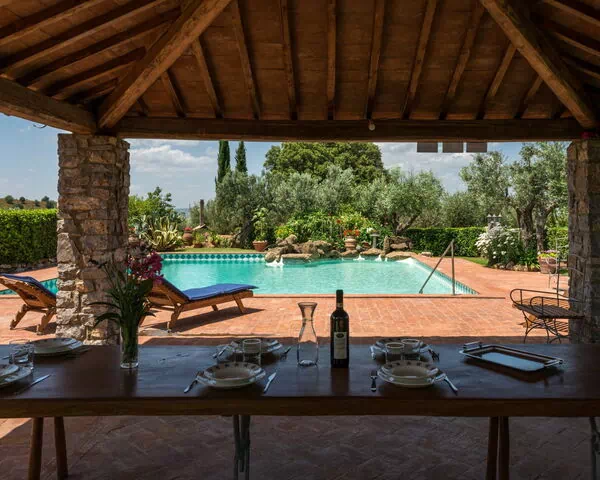 El jardín privado de 1.500 m² abarca un exuberante césped y un jardín silvestre que ofrecen amplio espacio para relajarse y conectar con el paisaje toscano. La piscina mide 10 x 9 metros con una profundidad de 80 a 160 cm; se trata de una piscina sin calefacción disponible del 15 de mayo al 15 de octubre. Una ducha exterior está ubicada cerca de la piscina. Una caseta de piscina equipada con una cocina de leña añade una dimensión especial a la vida al aire libre, permitiendo preparar y disfrutar de comidas en el exterior.