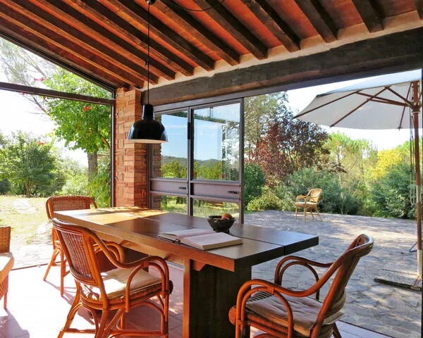 Los espacios exteriores de "Lara" destacan por su amplitud y belleza natural. El jardín en terrazas se extiende a lo largo de los 15.000 metros cuadrados de la propiedad y alberga una variedad de árboles y zonas de prado abierto que invitan a paseos tranquilos y momentos de contemplación. La posición soleada de la casa asegura que las áreas exteriores reciban luz natural durante todo el día, lo que las hace ideales para comer al aire libre, tomar el sol o disfrutar de las vistas sin obstáculos de la campiña italiana. El acceso a la propiedad se realiza a través de un camino de motor de 150 metros con superficie irregular, lo que añade a la sensación de aislamiento y encanto rural que caracteriza a "Lara".