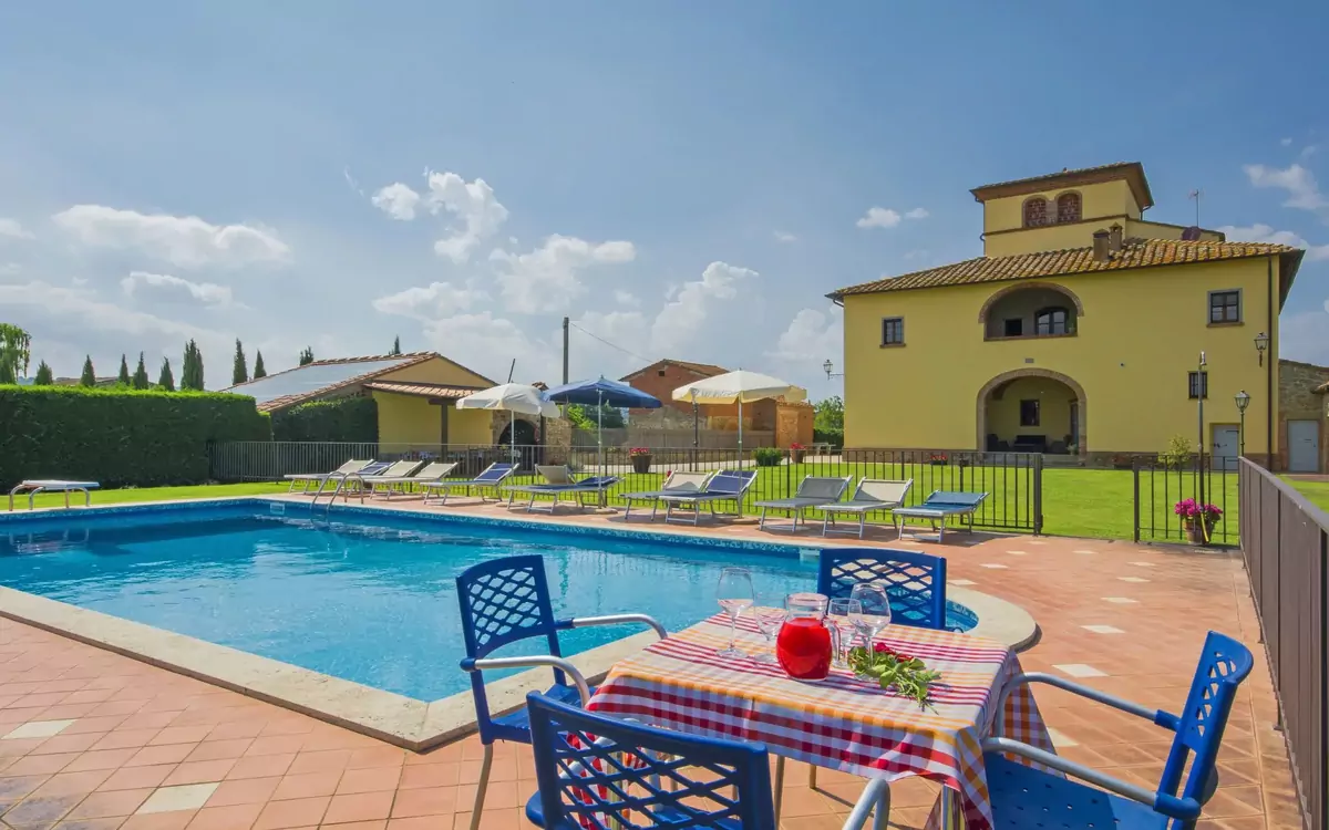 Casa colonial leopoldina con desván, sabiamente reestruturada con amplios espacios externos equipados con horno de leña y templete, así como de un porticado equipado de barbacoa, horno para pizzas y lugar para desayunos y cenas, cerca de la piscina, rodeada por los típicos campos de girasoles toscanos. La propiedad con cancela automática, gozando de absoluta privacidad. Los interiores son muy sugestivos y recuerda la fascinación de las casas de otros tiempos, con grandes salones con hogares, mesa grande para comer, suelos de cerámica, techos altos con vigas de madera a la vista. La cercanía de la autospista(a 3 km de la casa, a 800m a vista aérea) hacen de la casa un puntoideal para los que deseen visitar los puntos más importantes de la Toscana. En temporada baja se aceptan estancias cortas con un mínimo de 3 noches. Villa muy amplia, bonita, confortable del año 1814, reformada, rodeada de prados. A 3 km del centro de Monte San Savino, a 7 km del centro de Lucignano, a 80 km del centro de Firenze, lugar soleado, en el campo. Privado: terreno 6 ha, jardín 2'000 m2 (vallado) con césped, piscina vallada (6 x 12 m, 120 - 230 cm de profundidad, Disponible por temporada: 18.May. - 05.Oct.) con escalera interior. Ducha exterior, tenis de mesa, cenador, muebles de jardín, barbacoa, parque infantil (tobogán). En el inmueble: tenis de mesa, calefacción central, lavadora, posibilidad de pagar la calefacción en plaza, calefacción disponible desde el 01.Nov. - 07.Abr.. Posibilidad de limpieza (extra). Posibilidad de cocinero (extra). Aparcamiento. Supermercado 3 km, centro comercial 12 km, parada autobús 4 km, estación de tren "Monte San Savino" 3 km, piscina termal "Serre di Rapolano" 34 km. Centro ecuestre 12 km. Atracciones en los alrededores: Arezzo 12 km, Montepulciano 33 km, Pienza 39 km, Siena 40 km, Cortona 42 km, Montalcino 46 km. Adecuado para eventos.