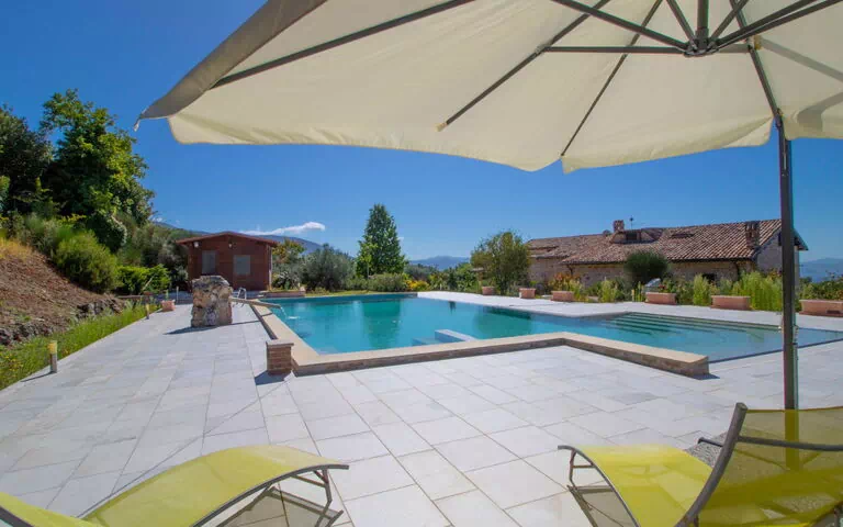 La villa "La Danza" se encuentra en la campiña umbra de Massa Martana, Italia, a 350 metros de altitud, rodeada de árboles y campos abiertos. Se trata de una propiedad independiente y cuidadosamente equipada que ofrece un refugio sereno y luminoso. La villa está envuelta por un parque privado completamente vallado de 2 hectáreas, que proporciona privacidad total y una profunda sensación de aislamiento dentro de un paisaje naturalmente rico.