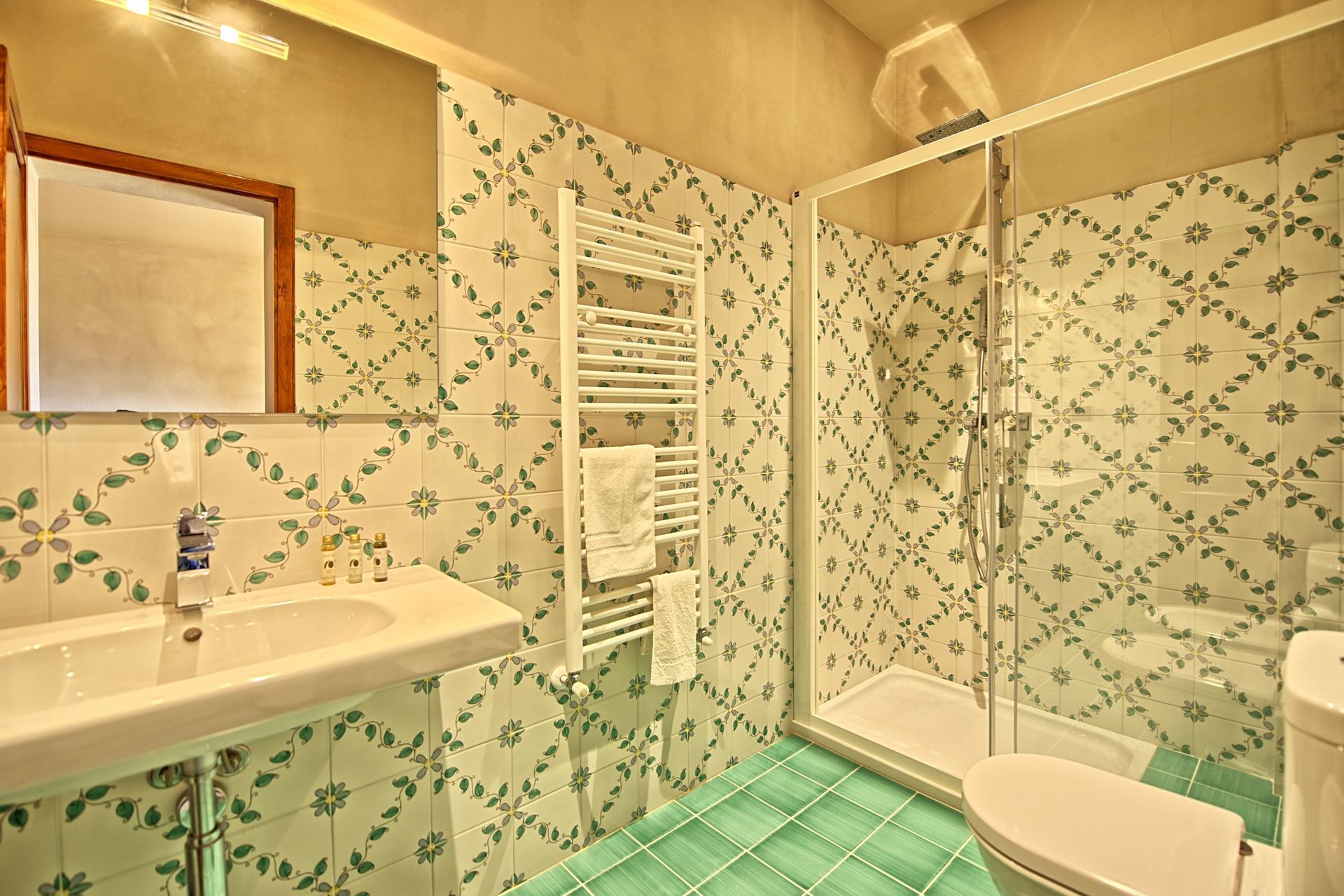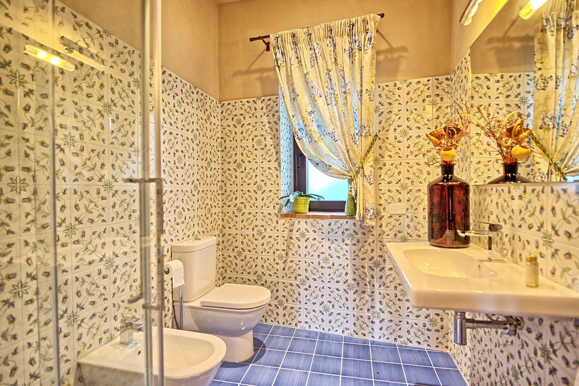 Ground floor: living-room (satellite TV) with dining area and kitchen corner (oven, freezer, dishwasher, Espresso coffee machine), double bedroom with ensuite bathroom with shower, double bedroom, bathroom with shower, store-room with washiìng-machine.
