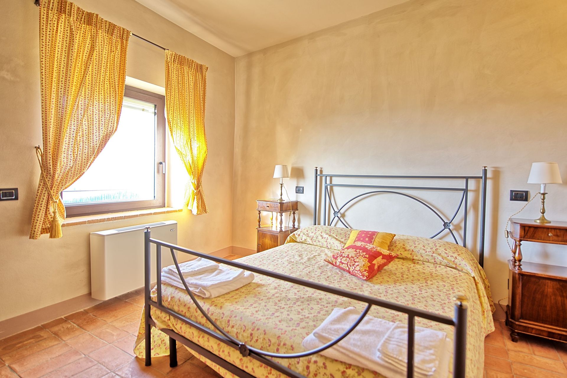 The living room and the bedrooms are provided with air-conditioning.