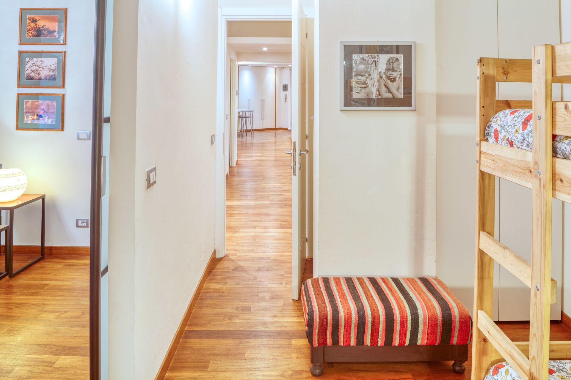 El apartamento, que mide aproximadamente 120 metros cuadrados, es adecuado para familias numerosas o grupos de amigos.