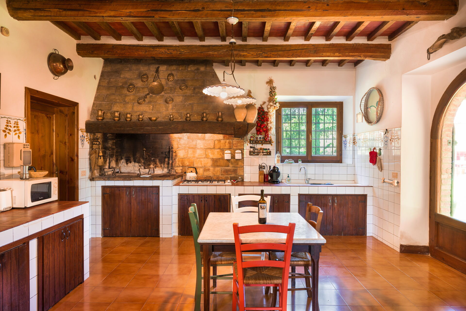 Tras llegar a Podere a Lafi encontraras una estupenda propiedad limpia y acogedora con vista sobre las colinas ideal para unas vacaciones relajadas en Toscana. Después un día pasado visitando museos, disfrute de una buena copa de vino con sus amigos y su familia al lado de la piscina - lo mejor para descansar después de un largo día. Para su placer, afuera hay patio de recreo, porche y barbacoa. Si le gusta cocinar para su familia y amigos hay una cocina bien equipada incluso máquina de café, microondas, tostador y nevera, así como , muchas vajillas y cubiertos para hasta ocho personas. Si prefiere comer afuera 'al fresco', hay la veranda, un espacio bien equipado donde puede disfrutar el buen clima comiendo afuera.