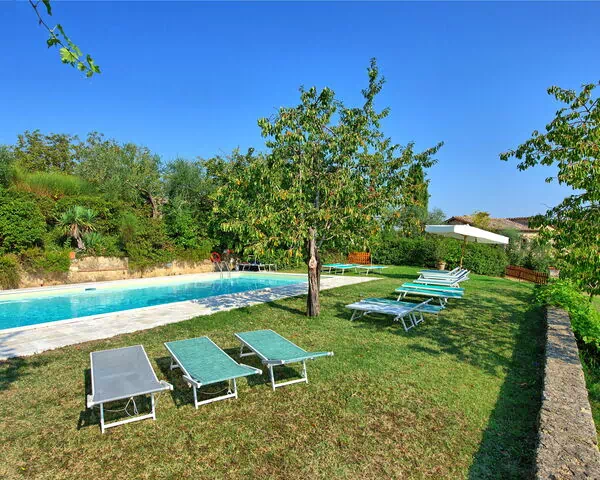 The property is found in the countryside in a quiet panoramic location and has a swimming pool which is for the private use of guests only.