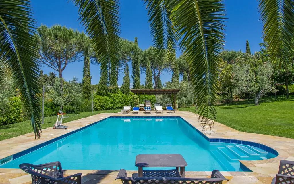 La casa vacacional "Villa Rosa" se encuentra en la llanura entre Cecina (6 km) y Bolgheri (11 km), rodeada de praderas y olivares, en un jardín espacioso con palmeras, olivos, cipreses y lavandas, a tan solo unos kilómetros del mar. La propiedad incluye aprox. 1600 m2 de parcela vallada, de donde se extiende la vista al mar. Casa "Villa Rosa", bonita de 2 plantas, individual, rodeada de árboles y campos. Lugar tranquilo, soleado, a 6 km del mar. Privado: bonito jardín para relajarse, piscina (8 x 12 m, Disponible por temporada: 01.May. - 30.Oct.) con sistema de limpieza por electrolysis de sal. WC en zona de piscina, ducha exterior, piscina de hidromasaje, porche, mantenimiento de la piscina a través del propietario/jardinero. En el inmueble: Wifi, calefacción central, lavadora. Acceso (200 m camino de tierra). Aparcamiento (para 3 coches, cubierto). Tienda 5 km, supermercado 5 km, restaurante 4 km, parada autobús 3 km, estación de tren "Cecina" 7 km, piscina termal "Donoratico" 18 km. Puerto para yates 22 km. Atracciones en los alrededores: Pisa 70 km, Lucca 90 km, Firenze 120 km.
