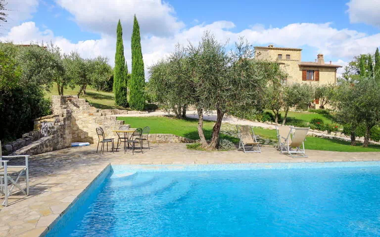 Casa de campo "Roseto", bonita, confortable, individual, rodeada de árboles, prados y campos. 3 casas en el complejo. A 4 km del centro de Collazzone, a 14 km del centro de Todi, a 40 km de un lago, en el campo. Privado: terreno 3'000 m2 con césped y árboles, terreno con hierba, piscina (12 x 6 m, 150 cm de profundidad, 02.05.-26.09.). Ducha exterior. En el complejo: sauna, gimnasio (extra). Masaje (extra). Baño turco (extra). Whirlpool (extra). Alquiler de bicicletas. Posibilidad de cocinero (extra). Aparcamiento (para 2 coches). Supermercado 2.5 km. Lagos conocidos fácilmente accesibles: Lago di Trasimeno 40 km. A tener en cuenta: coche recomendable. Adecuado para eventos. El propietario no acepta grupos de adolescentes/jóvenes. Venta local de productos de granja. La propiedad con ref: 615.1,616.1 está situada en la misma parcela.