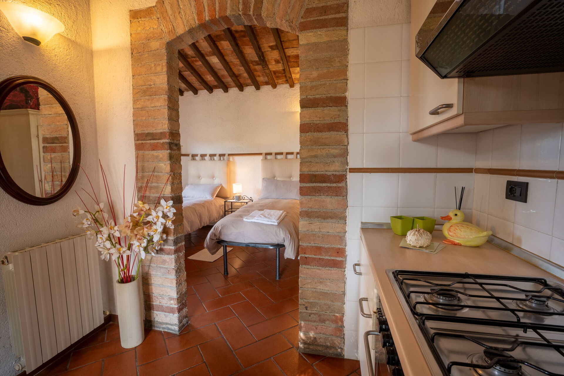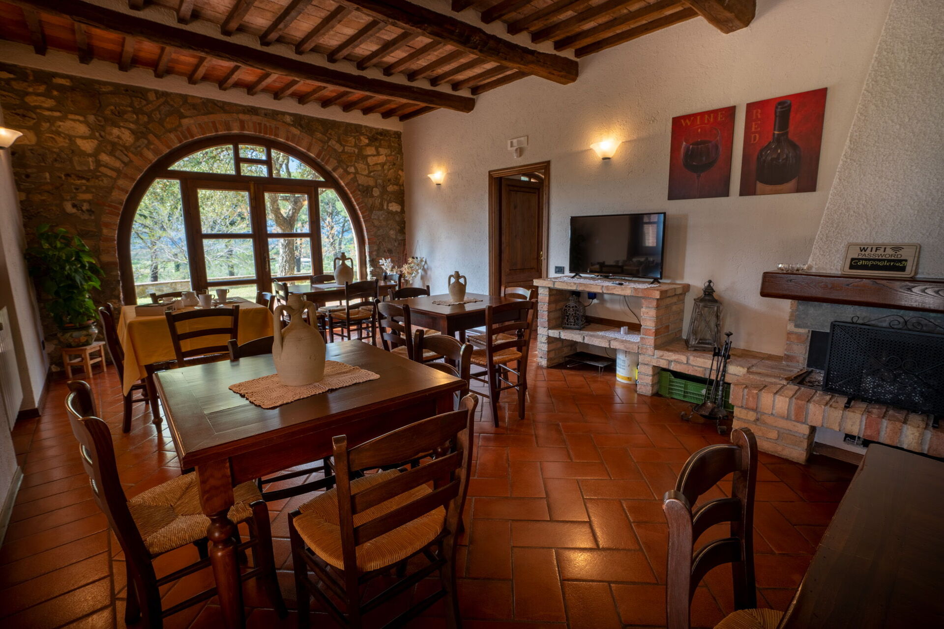 Después de llegar a Campo Valerio encontraras una estupenda propiedad limpia y acogedora con vista sobre el mar y las colinas perfecta para unas vacaciones relajadas en Toscana. Independientemente de como pasa sus días - museos, shopping, excursiones o simplemente visitando y descubriendo el paisaje, cuando llega a casa puede relajarse con amigos y familia cerca de la piscina para un final de día perfecto en Toscana. Otras comodidades disponibles afuera son parrilla y parque infantil. Comer con familia y amigos es un aspecto de gran importancia en la cultura toscana. Aproveche de una cocina bien equipada para preparar comidas utilizando productos locales durante sus vacaciones. La cocina incluye cafetera, microondas, toaster y nevera, además de, muchas vajillas y cubiertos para hasta 13 personas.