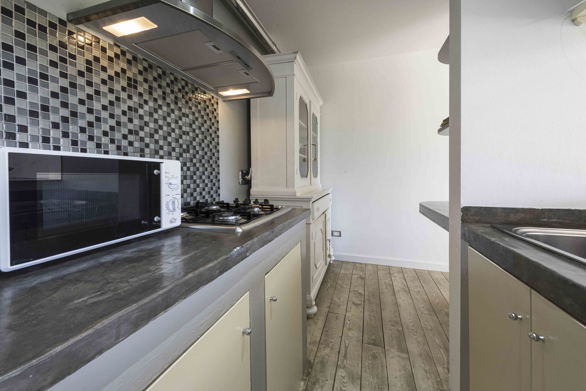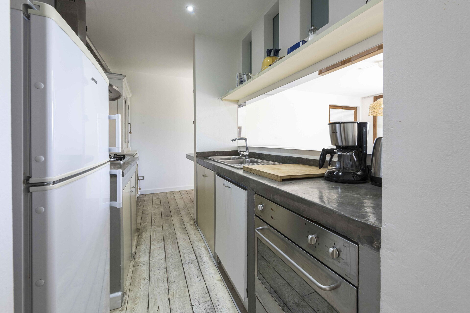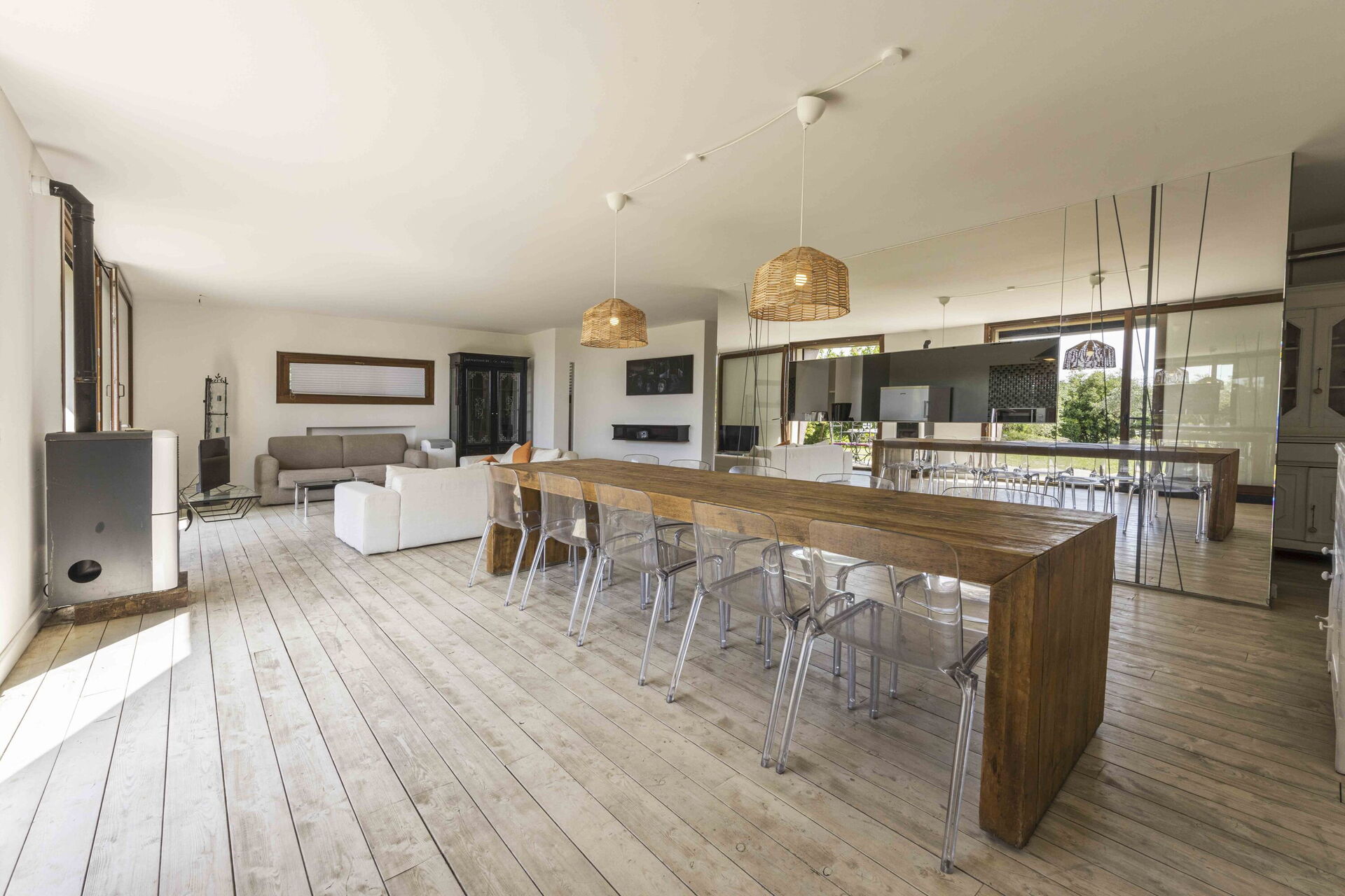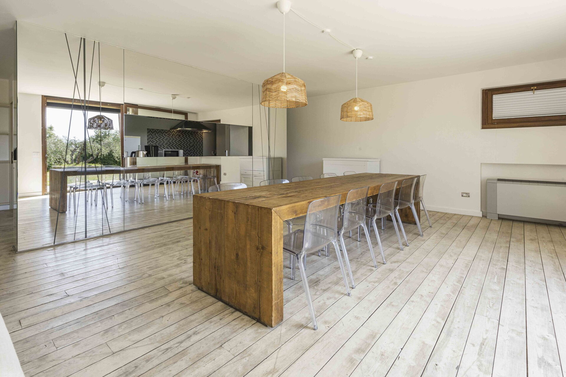 Cocina-salón: cocina bien equipada, mesa de comedor (gente: 8), lavavajillas, frigorífico, congelador, microondas, cocina de gas, horno, máquina de café italiana, dos sofas, sofá cama de matrimonio, WIFI internet, aire acondicionado, televisión, acceso al jardín.